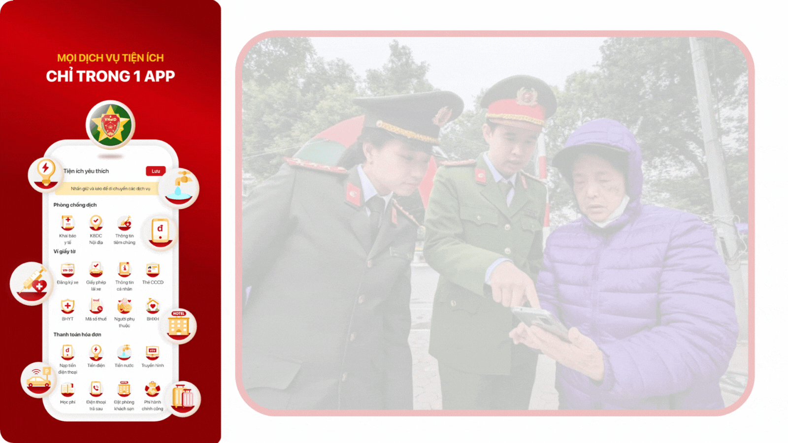 Đẩy mạnh sử dụng nền tảng định danh điện tử (VneID), như: tích hợp 2,2 triệu dữ liệu đăng ký phương tiện, 10,2 triệu dữ liệu giấy phép lái xe, 16,8 triệu dữ liệu bảo hiểm y tế; làm thủ tục hàng không cho chuyến bay nội địa; khai báo lưu trú; tích hợp thông tin cư trú của công dân …