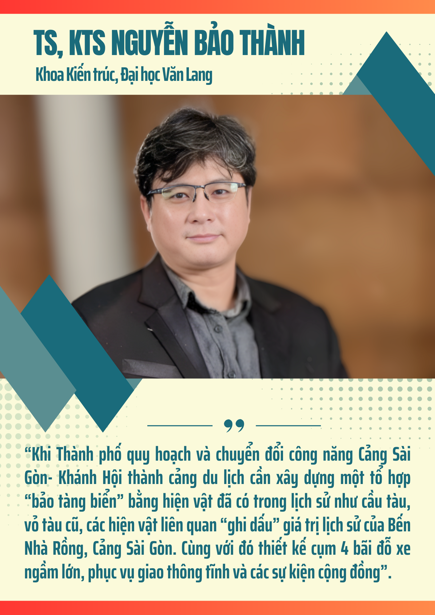 Không có cảnh quan thiên nhiên nào mang ý nghĩa đặc biệt như sông Sài Gòn đối với Thành phố Hồ Chí Minh. Quy hoạch và tái thiết dòng sông không chỉ hướng đến giá trị vật chất mà còn mở ra cơ hội định hình diện mạo đô thị nhân văn, kết nối quá khứ–hiện tại–tương lai. Khi được quy hoạch đúng tầm, dòng sông ấy sẽ thật sự “nối liền một dải”, trở thành dòng sông “mẹ” của một đô thị sáng tạo, hiện đại và giàu bản sắc.