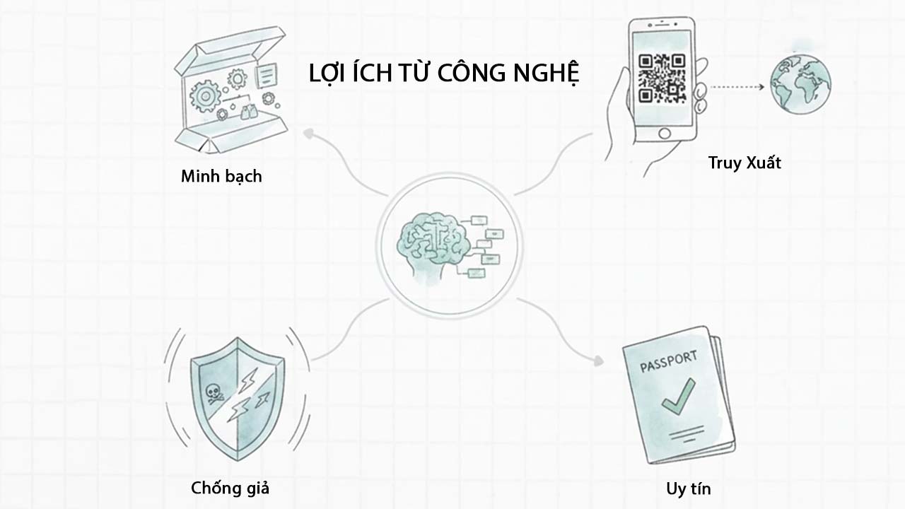 Với công nghệ quản lý, mỗi mã QR blockchain gắn với hình ảnh bao bì và thông tin chi tiết, giúp phát hiện sai lệch nếu có tem giả hay dán nhầm. Với doanh nghiệp sản xuất, đây còn là công cụ quảng bá uy tín, được các hệ thống phân phối xác nhận như một “hộ chiếu danh dự” và sẽ thuận lợi hơn trong việc mở rộng thị trường.