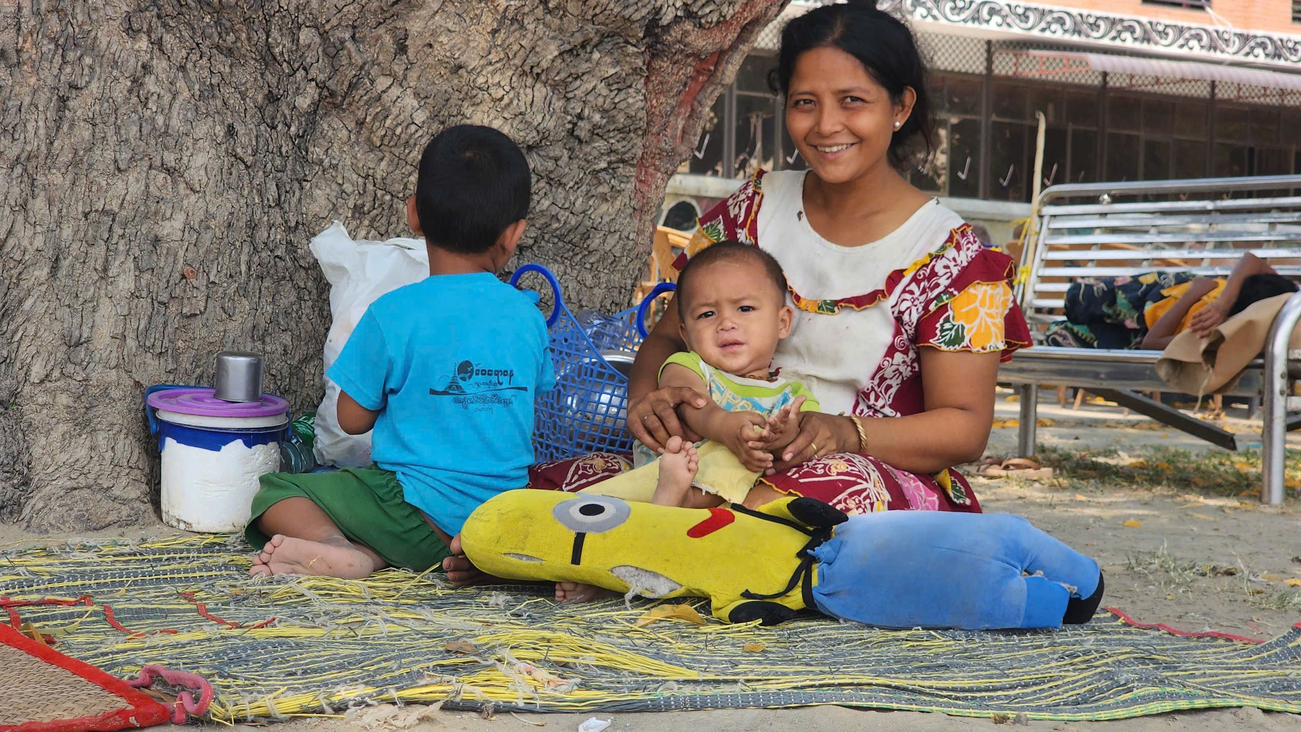 Việc đầu tiên của Khaing khi trở về lều từ nơi làm việc là… đếm lại đám trẻ chung quanh. Rồi, vừa xếp gọn lại đống chăn màn, cô vừa hỏi han sức khỏe của mẹ, năm nay đã 85 tuổi. Khaing, 39 tuổi, cũng là người hiếm hoi có thể nói được tiếng Anh tại khu tạm trú gồm 128 người này.