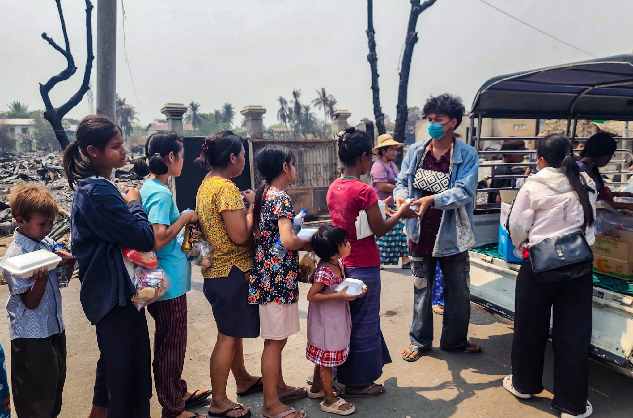 Do hệ thống cơ sở vật chất tại Mandalay bị phá hủy nghiêm trọng, hàng nghìn hộ dân buộc phải dựa vào những chuyến xe hỗ trợ nước, thực phẩm cho những nhu cầu tối thiểu hằng ngày.