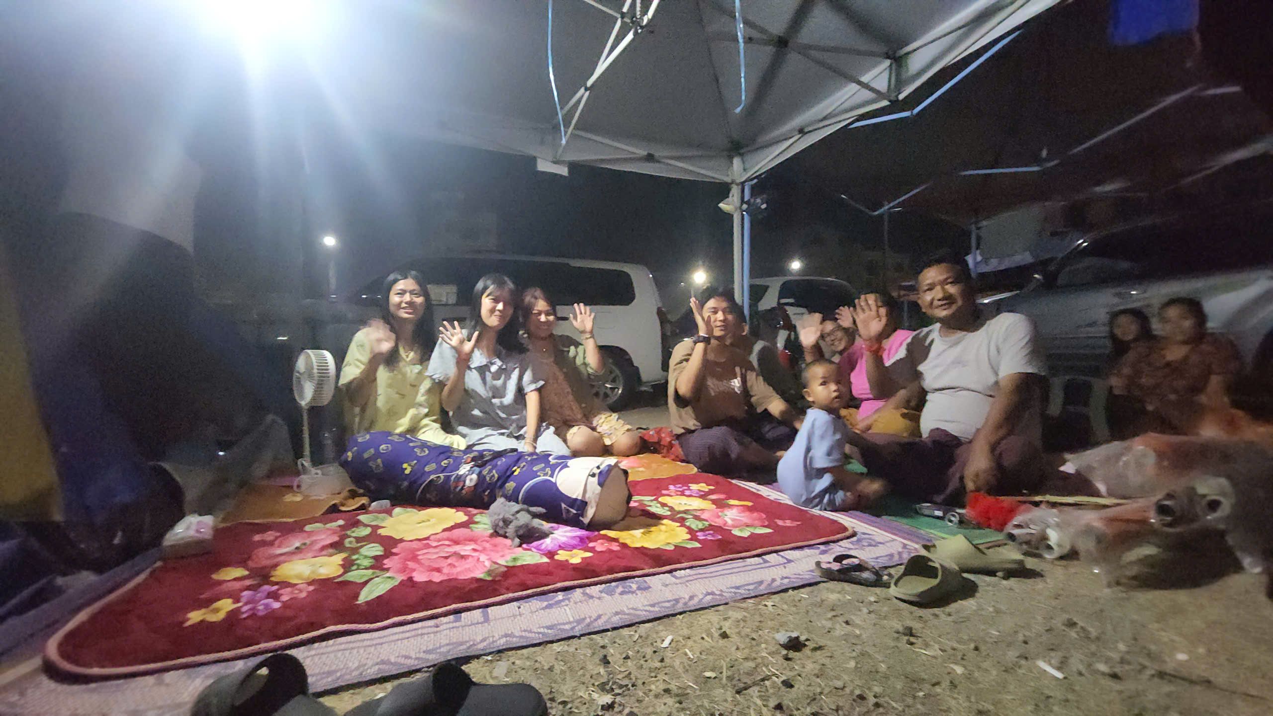 Chỉ tay vào 3 đứa trẻ đang bốc thức ăn đựng trong hộp xốp, Khaing mỉm cười: “Không ai trong gia đình tôi bị thương. Nhưng lũ trẻ thì rất sợ hãi. Nhà chúng tôi cũng nứt hết rồi. Vậy nên, tất cả ra đây ở tạm”.