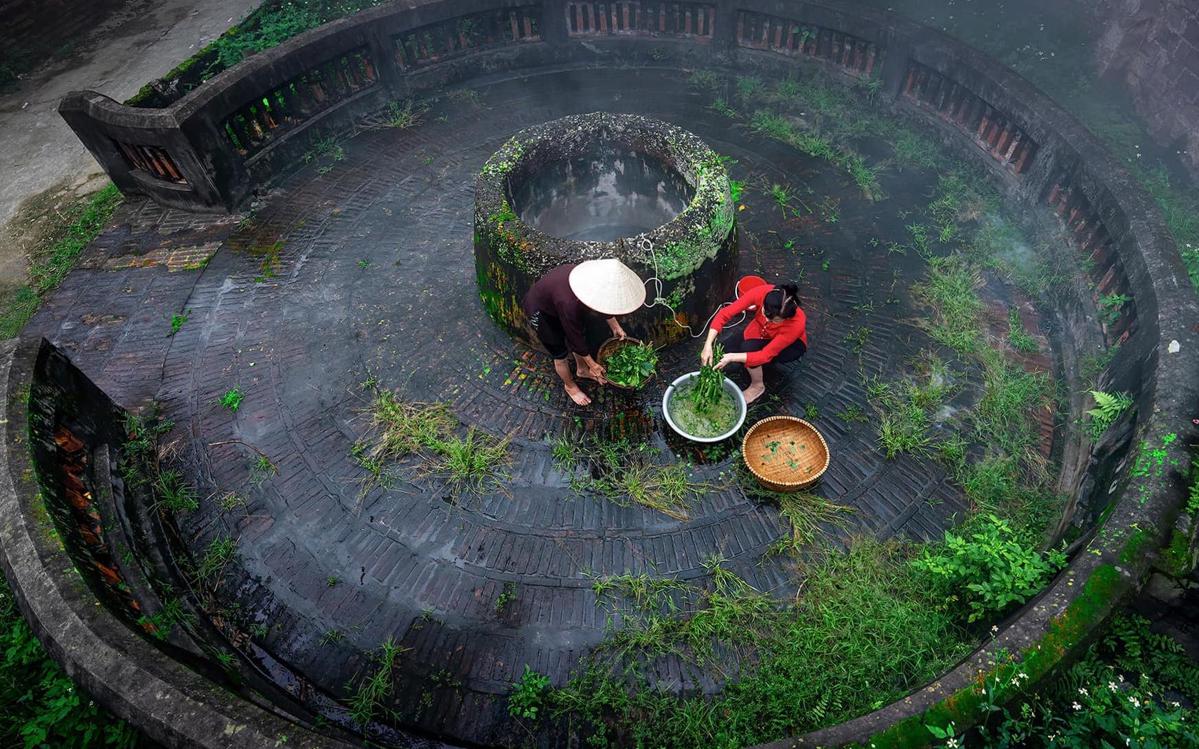 Những chiếc giếng cổ tạo nên những không gian đậm chất quê ở làng cổ Đường Lâm (thị xã Sơn Tây). Ảnh: Nina May.