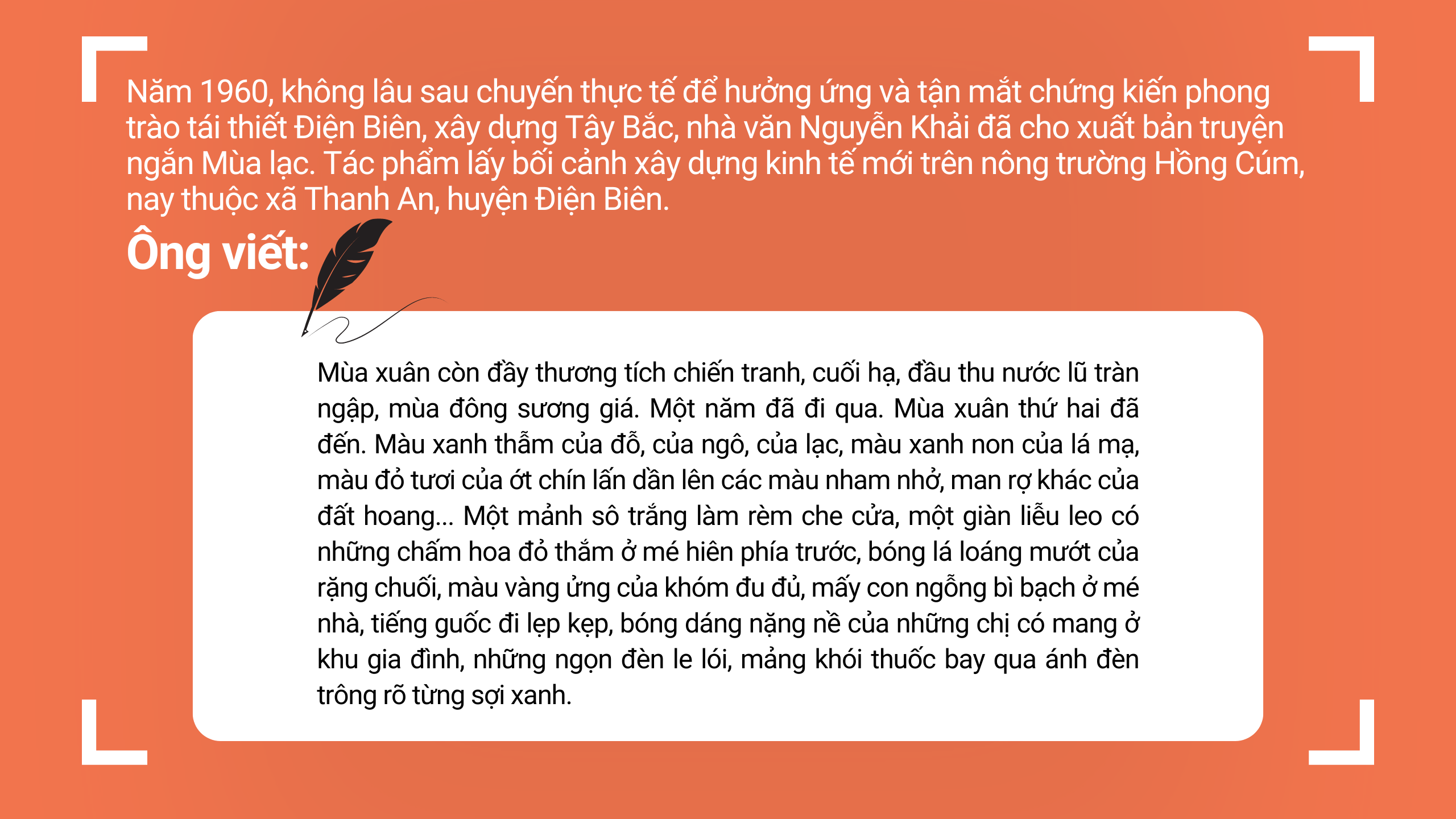 Nhiều năm đã qua đi, phần lớn lớp cựu chiến binh Điện Biên Phủ tại “làng” đã rủ nhau về miền sáng. Người còn sống cũng chẳng đủ minh mẫn và sức khỏe để chuyện trò lâu. Chúng tôi đã cố gắng ghi lại những dấu vết còn sót lại của “làng” theo cách… vật lý nhất khi vừa đi, vừa hỏi và chụp lại những biển, bảng, tên xóm, tên cầu còn mang bóng hình quá khứ.