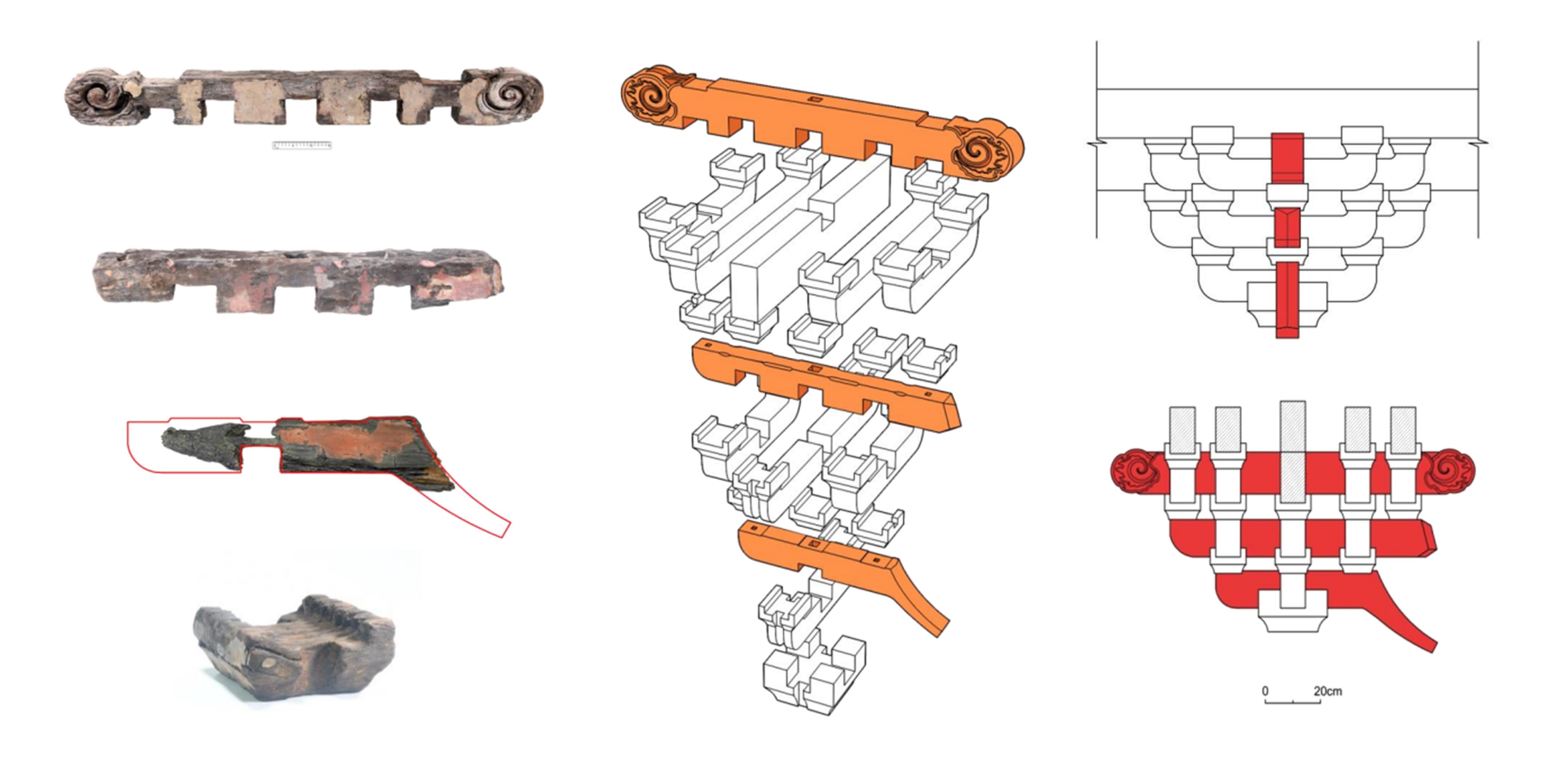 Từ những viên ngói, các nhà khoa học tính toán ra bộ mái. Từ những cấu kiện gỗ, ra được bộ giá đỡ mái và hệ thống cột, vì kèo… Từ những chân cột đá, các gian trong cung điện, chiều dài, chiều rộng cung điện cũng dần hình thành.