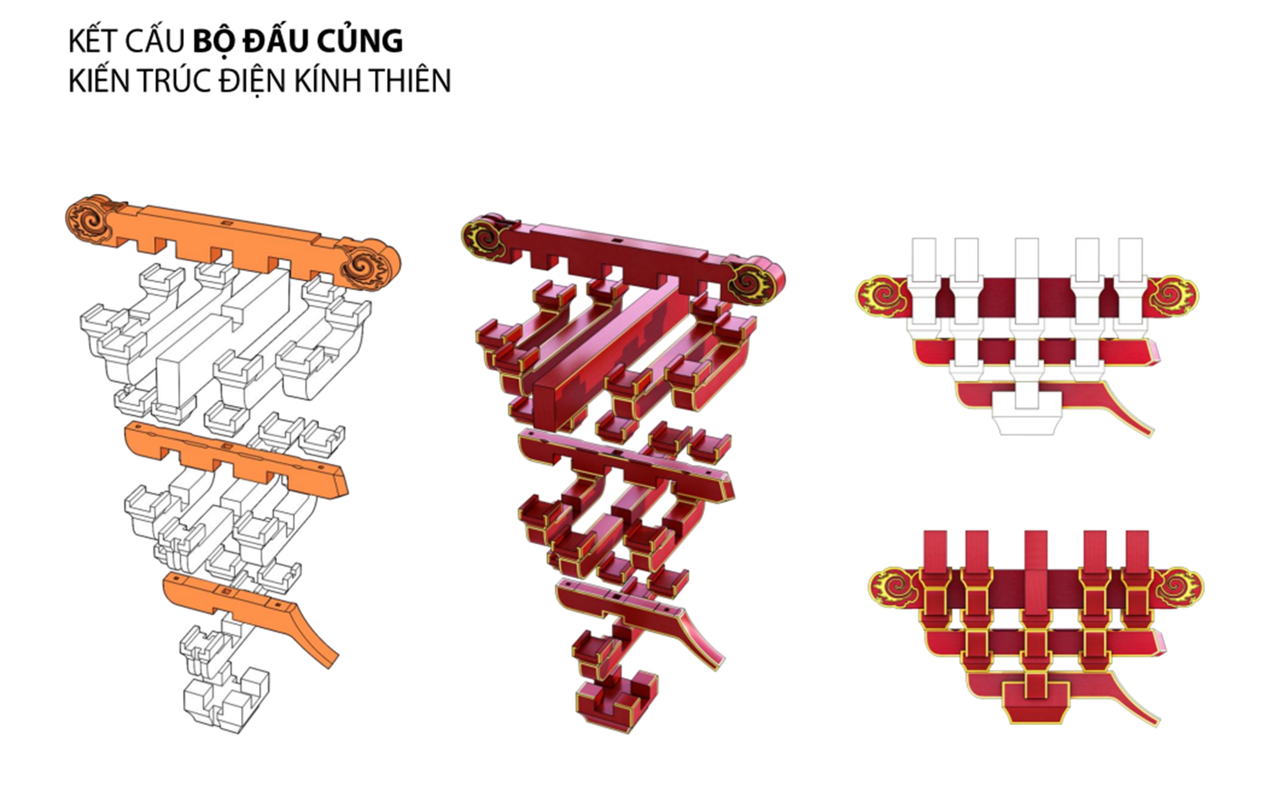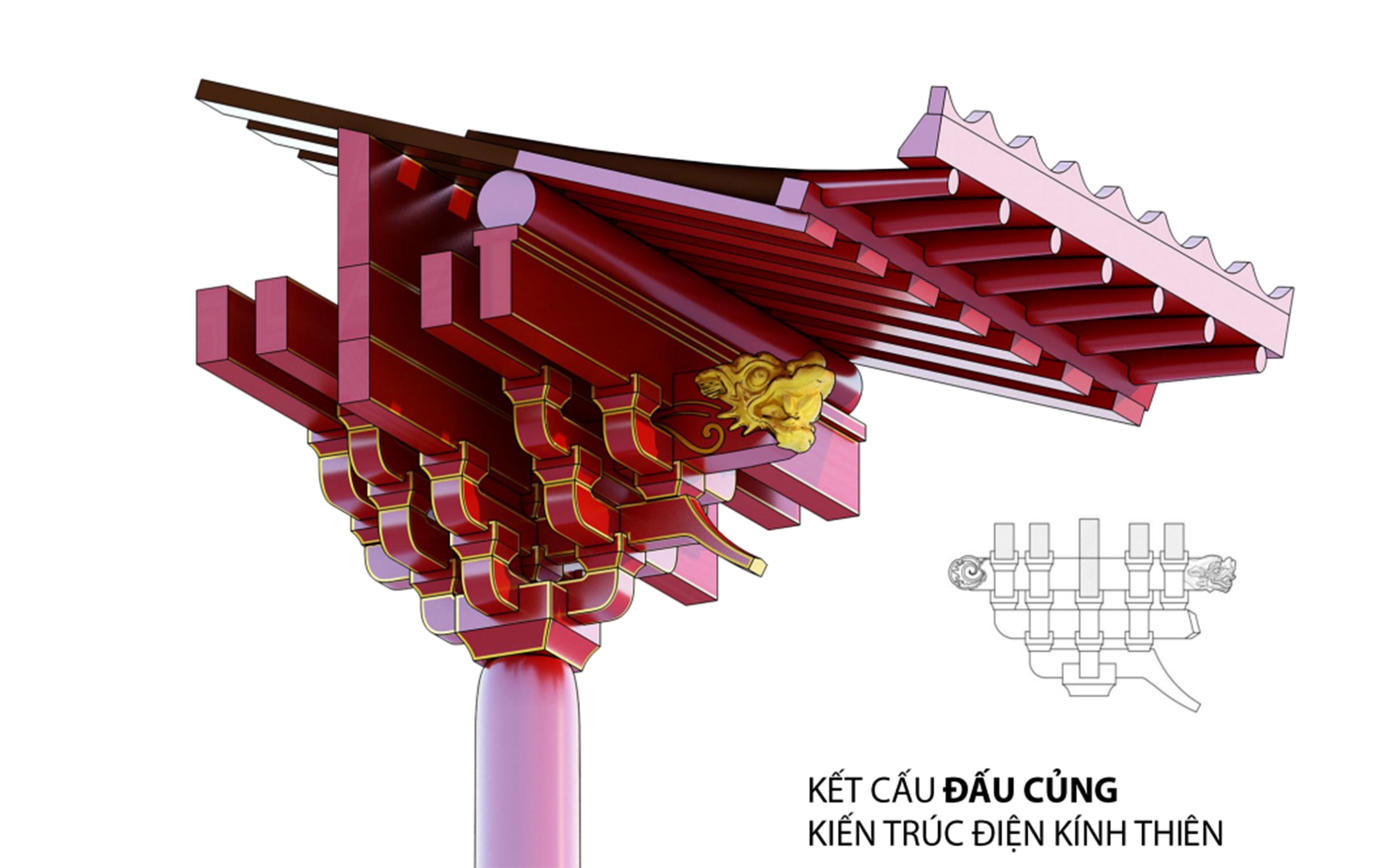 Phó Giáo sư, Tiến sĩ Bùi Minh Trí, Viện trưởng Viện nghiên cứu Kinh thành, người phụ trách dự án cho rằng, tư liệu tin cậy và xác thực này cho thấy, kiến trúc cung điện thời Lê sơ thuộc loại kiến trúc đấu củng. “Đây là nhận định rất quan trọng, là “chìa khóa” cho hành trình nghiên cứu bí ẩn hình thái kiến trúc điện Kính Thiên. Kiến trúc này có quy mô to lớn, thuộc loại kiến trúc đấu củng, trùng diêm, trên mái lợp ngói rồng men vàng đặc sắc và được trang trí bằng các tượng đầu rồng vươn cao lên trời, tạo nên vẻ đẹp cao sang và đầy quyền lực của vương triều”, ông khẳng định.