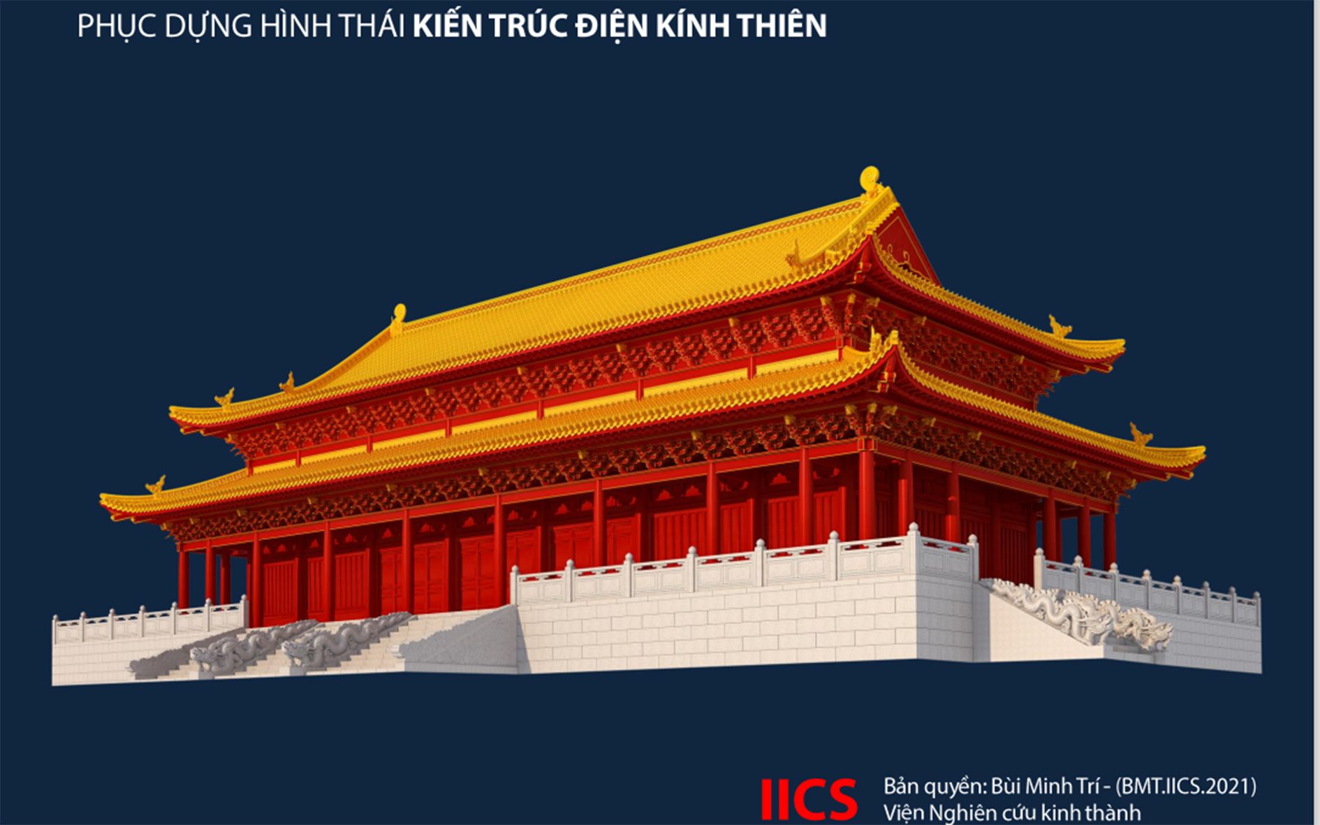Lần đầu tiên công chúng Hà Nội được chiêm ngưỡng hình ảnh điện Kính Thiên thời Lê sơ rực rỡ tráng lệ, với mái ngói, cột kèo sơn son thếp vàng, ngói rồng, tượng rồng trên từng lớp mái. Đây là công trình phục dựng hình ảnh điện Kính Thiên từ công nghệ 3D, tái hiện bằng mô hình với đầy đủ bộ mái, cột, vì kèo, các gian và bậc thềm đá…, do các nhà khoa học của Viện nghiên cứu Kinh thành (thuộc Viện Hàn lâm Khoa học Xã hội Việt Nam) thực hiện, Phó Giáo sư, Tiến sĩ Bùi Minh Trí-Viện trưởng chủ trì.