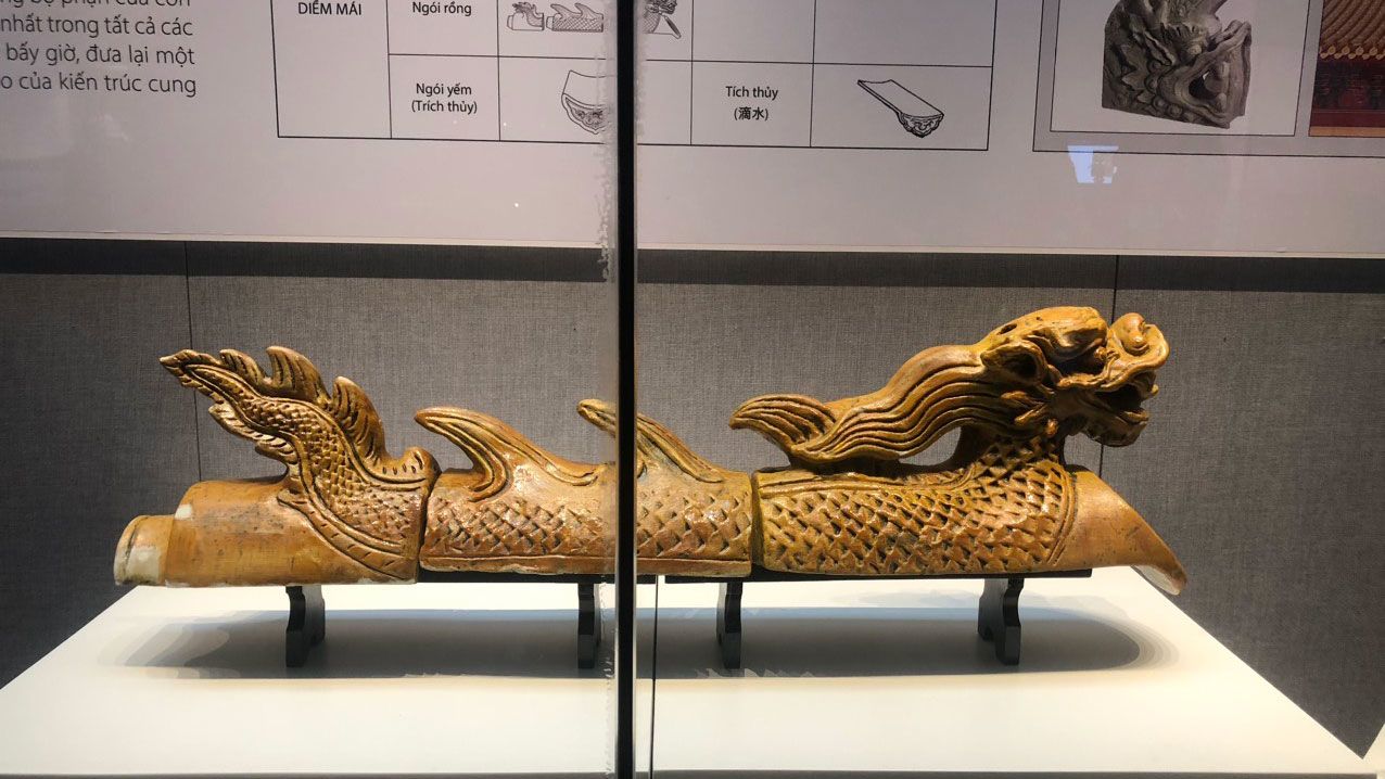 Ngói rồng đầu hồi. Sản phẩm được tạo dựng lại từ hiện vật gốc với công nghệ in 3D.