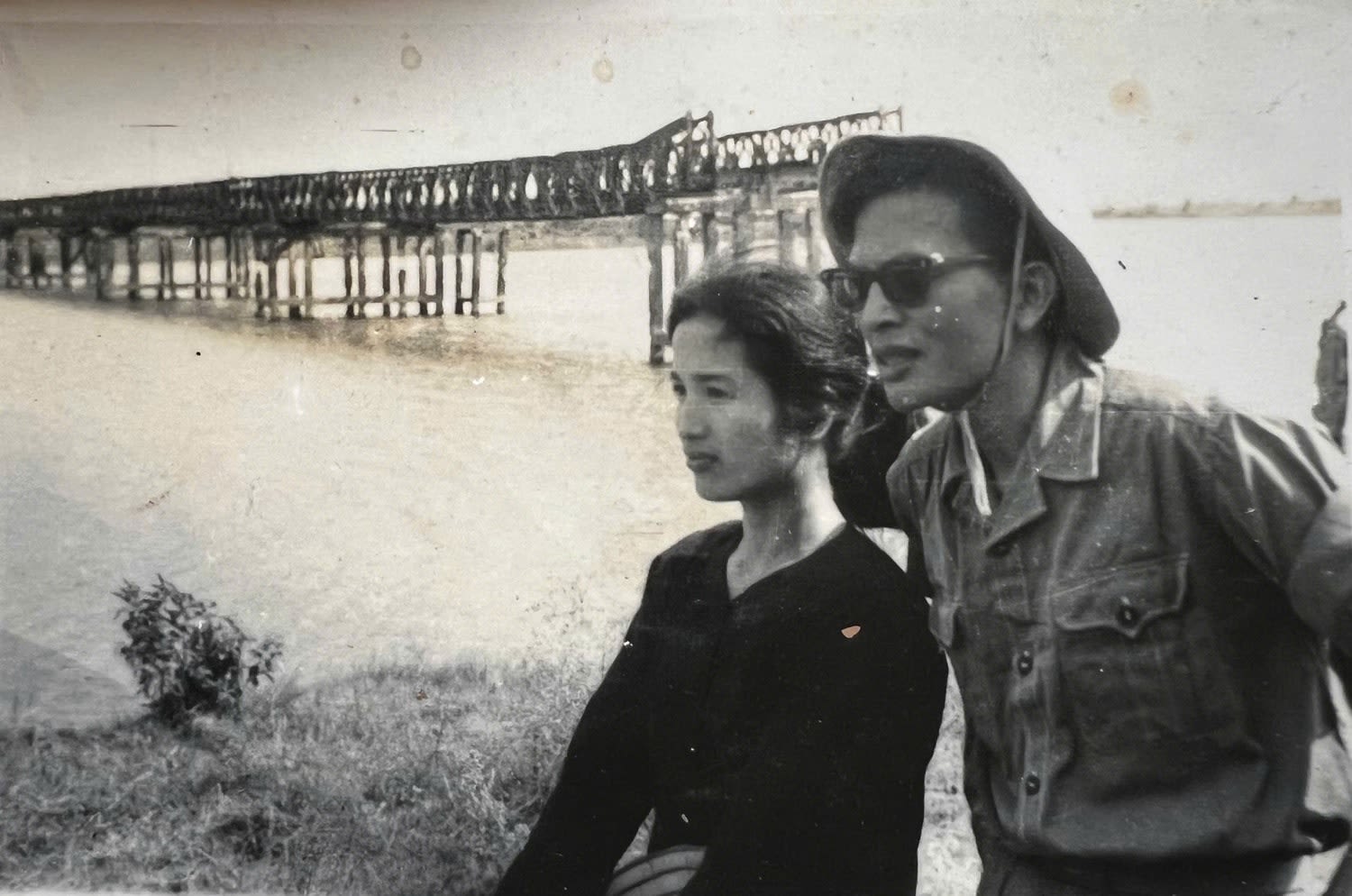 Đạo diễn Hải Ninh và diễn viên Trà Giang (Phim “Vĩ tuyến 17 ngày và đêm) bên cầu Hiền Lương năm 1972. Ảnh: Tư liệu