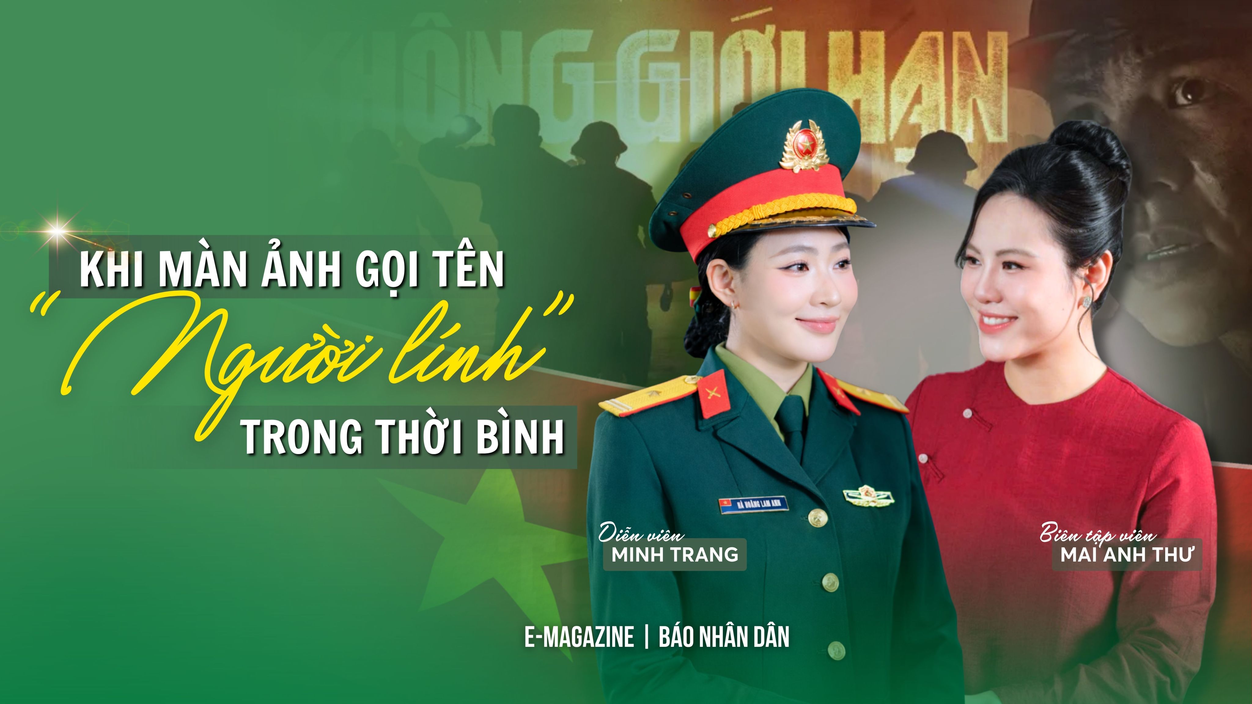 Quen mặt qua "Bạch Mã Hoàng Tử", "Tình Khúc Bạch Dương", "Cây Táo Nở Hoa", cô diễn viên trẻ gốc Hải Phòng Nguyễn Minh Trang không phải lựa chọn hiển nhiên cho vai quân nhân. Trước khi nhận vai Thiếu tá Hà Hoàng Lam Anh trong bộ phim "Không giới hạn", Minh Trang từng trải qua giai đoạn suýt bỏ nghề. "Sau 'Yêu Trước Ngày Cưới', Trang từng nghĩ mình đã cố gắng nhiều đến thế, vẫn chưa đủ tốt, hay do mình không có năng khiếu?" cô kể thẳng thắn. Nhưng rồi cô tự nhắc bản thân rằng con đường mới chỉ bắt đầu, dừng lại lúc này sẽ hối tiếc cả đời. Chính quyết tâm ấy đã đưa cô đến với vai diễn nữ sĩ quan thuộc đơn vị Tác chiến không gian mạng. Ngồi trong trường quay Báo Nhân Dân, hai tay xếp ngay ngắn trên đùi, Minh Trang cười bảo đó là thói quen cô mang về từ bốn tháng sống cùng bộ đội.