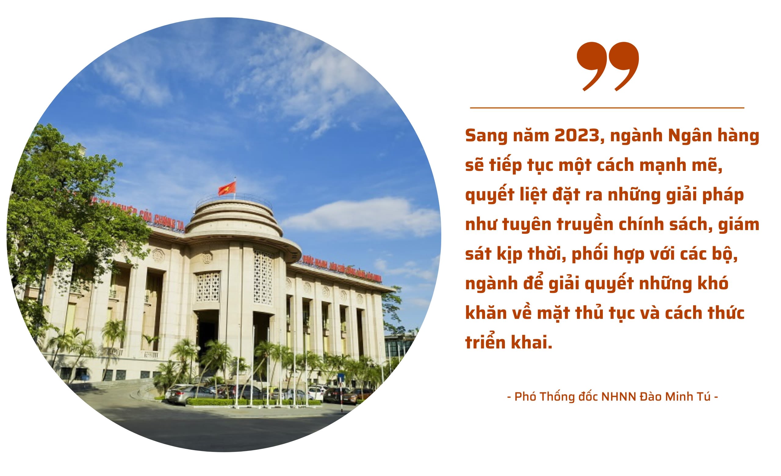 Phó Thống đốc Đào Minh Tú: Bước vào năm 2023 còn có rất nhiều khó khăn. Bởi vậy trong điều hành chính sách lãi suất, tỷ giá, Ngân hàng Nhà nước sẽ tiếp tục những chính sách hết sức linh hoạt và bảo đảm được cân đối chung để bảo đảm được niềm tin doanh nghiệp, người dân trong nền kinh tế đối với việc duy trì sự ổn định lãi suất cũng như ổn định xã hội. Bên cạnh đó, sẽ tiếp tục tập trung cung ứng vốn vào những lĩnh vực ưu tiên, nhất là lĩnh vực nông nghiệp-nông thôn, doanh nghiệp nhỏ và vừa, doanh nghiệp phục vụ cho xuất khẩu, phụ tùng thay thế, đặc biệt là phục vụ cho lĩnh vực có vai trò động lực cho tăng trưởng của nền kinh tế lúc này; những lĩnh vực thu mua lương thực nông sản của khu vực đồng bằng sông Cửu Long, khu vực Tây Nguyên; tăng cường hoạt động tín dụng chính sách về các chương trình mục tiêu quốc gia cũng như tín dụng đối với người nghèo, người thu nhập thấp. Bên cạnh đó, Ngân hàng Nhà nước cũng tập trung tín dụng cho những lĩnh vực mua nhà ở xã hội, nhà ở có giá trị thấp để phục vụ cho đời sống của người dân. Đây là những lĩnh vực chúng tôi sẽ tiếp tục đặt trọng tâm tăng trưởng tín dụng.