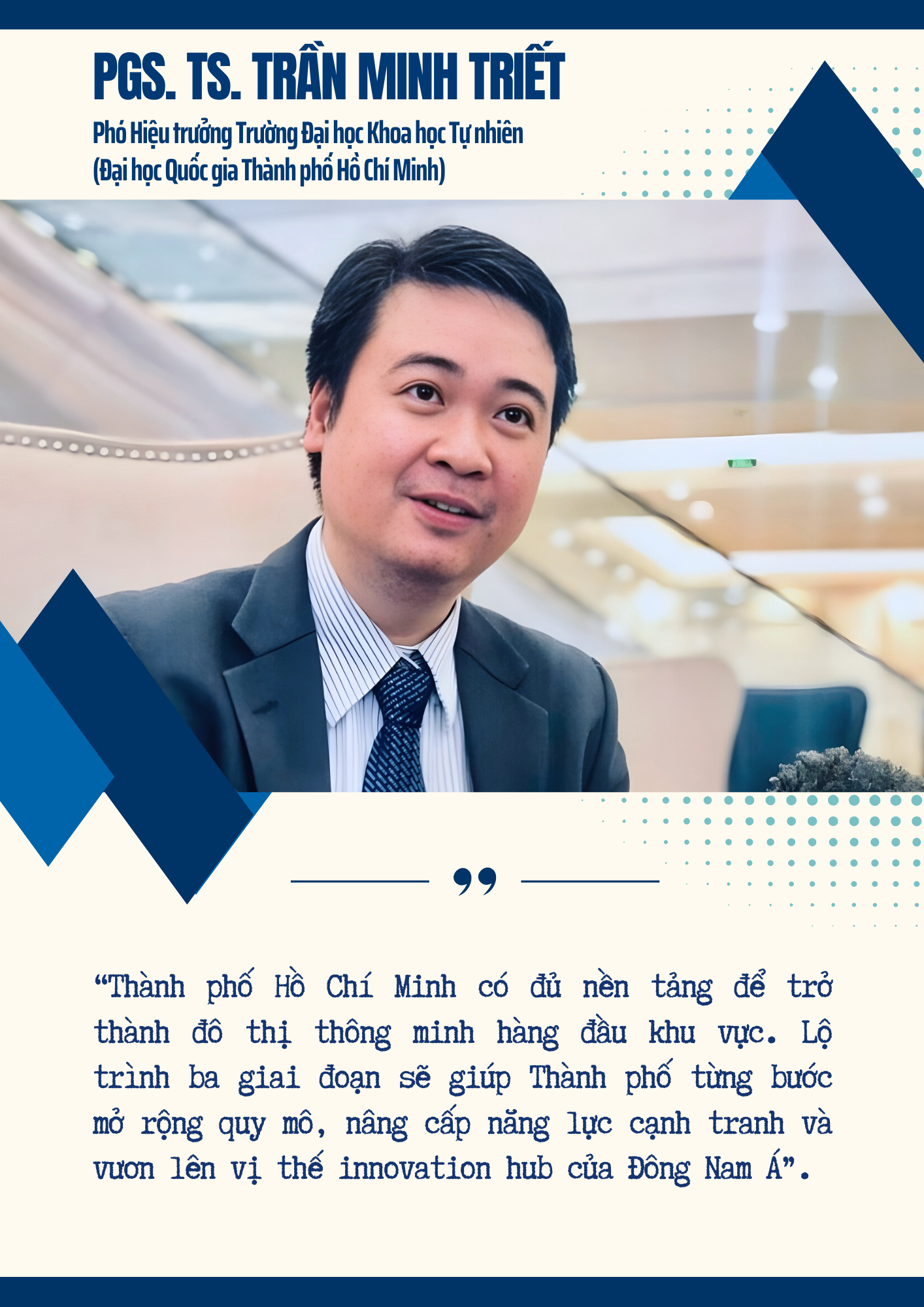Thành phố Hồ Chí Minh với nền tảng kinh tế mạnh mẽ có thể thực hiện bước “nhảy vọt” trong quy hoạch và phát triển đô thị thông minh. Hướng đi dự kiến được chia theo ba giai đoạn. Song song đó, Thành phố cần có sự hỗ trợ từ Trung ương để hoàn thiện khung pháp lý cho thử nghiệm công nghệ mới; thúc đẩy mô hình hợp tác nhà nước–doanh nghiệp–viện trường; hình thành các liên minh công nghệ nhằm quản trị đô thị thông minh hiệu quả.