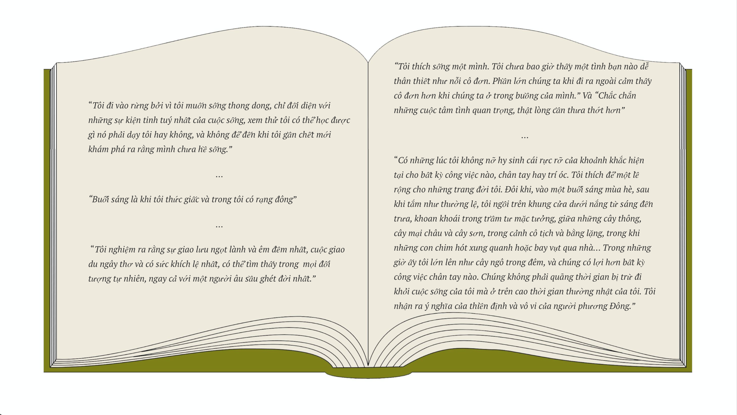 Bạn đọc sẽ tìm thấy nhiều chủ đề thực sự gần gũi với cuộc sống hằng ngày của mình, cả những trăn trở mà con người trong xã hội văn minh thường vẫn đang “vật vã” tự hỏi, tự trả lời. Có điều, nó được nhìn nhận và chưng cất bằng bộ lọc của một triết gia với quan điểm “yêu sự thông thái đến mức sống theo những tiếng gọi của nó, một đời sống đơn giản, độc lập, cao thượng và tin tưởng.”