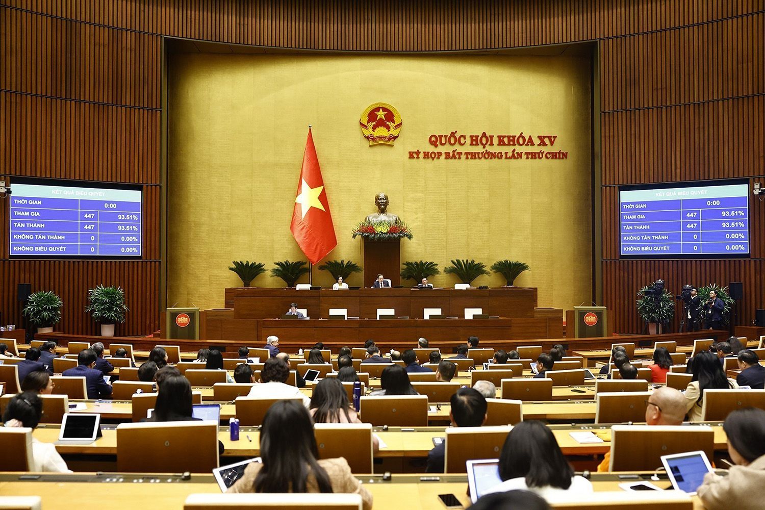 Quốc hội biểu quyết thông qua Nghị quyết bầu Chủ nhiệm một số Ủy ban của Quốc hội khóa XV. (Ảnh: TTXVN)