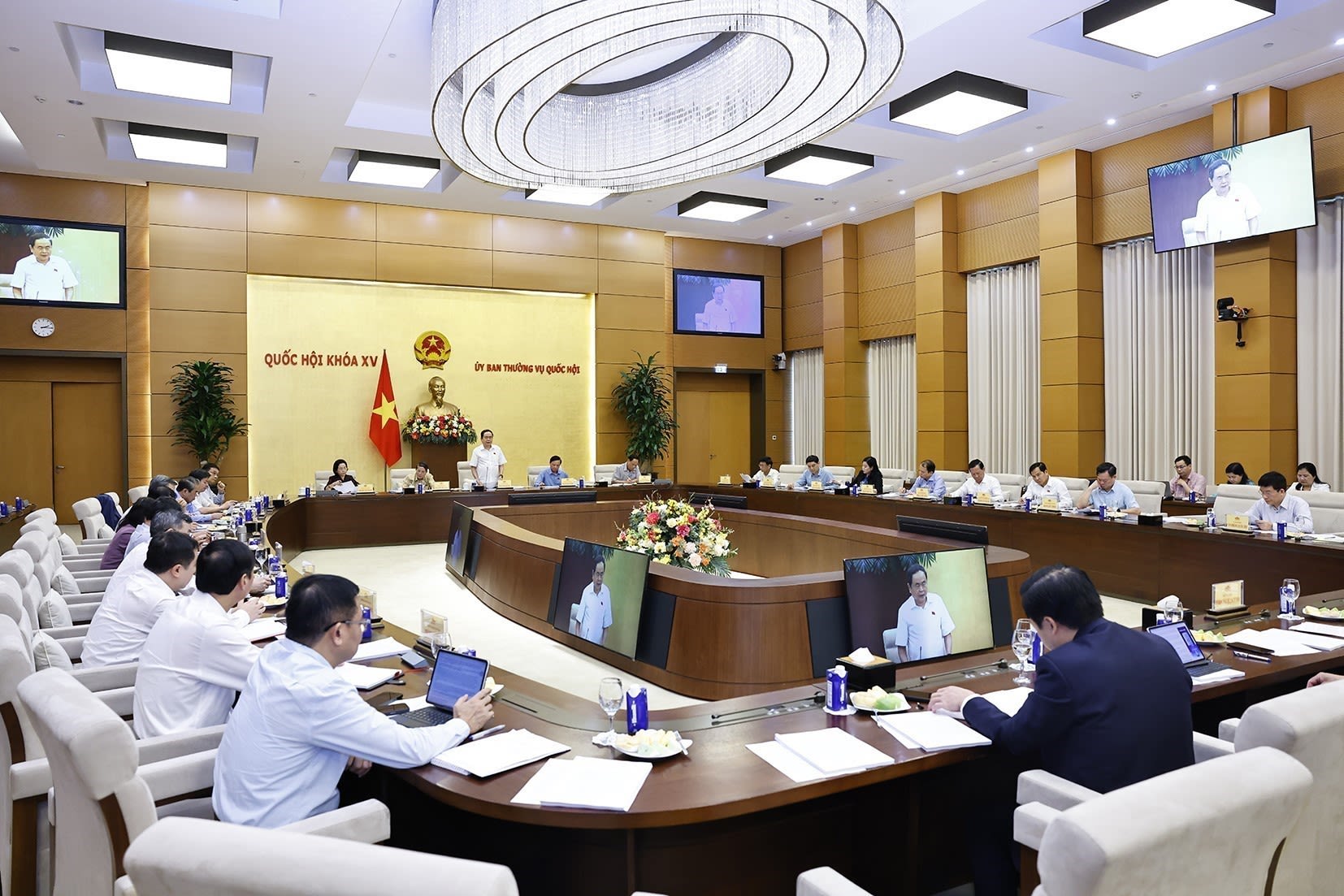 Đồng chí Trần Thanh Mẫn, Ủy viên Bộ Chính trị, Bí thư Đảng uỷ Quốc hội, Chủ tịch Quốc hội, chủ trì cuộc họp giao ban của với các cơ quan của Quốc hội, Văn phòng Quốc hội, các cơ quan tham mưu, giúp việc của Đảng ủy Quốc hội, ngày 3/7/2025. (Ảnh: TTXVN)