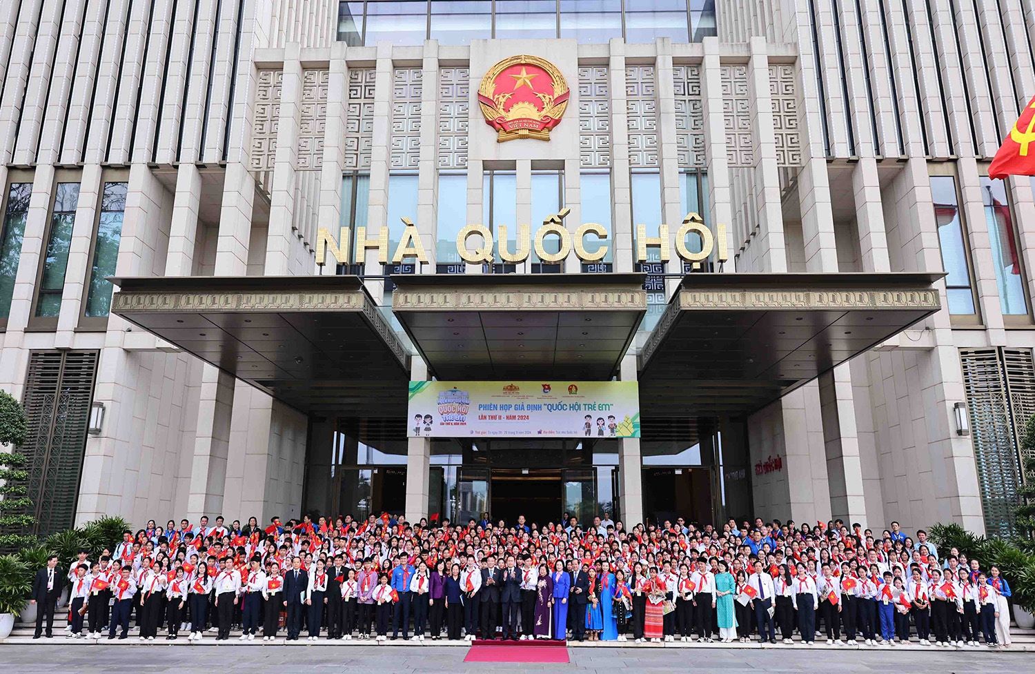 Chủ tịch Quốc hội Trần Thanh Mẫn với các đại biểu "Quốc hội trẻ em" dự Phiên họp giả định “Quốc hội trẻ em” lần thứ hai, ngày 29/9/2024. (Ảnh: TTXVN)