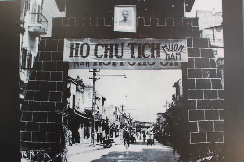 Ở Hàng Đào, thanh niên kết cổng chào bằng lụa, bay trong gió mùa thu rất đẹp. Phía Hàng Nón, mọi người làm cổng chào toàn bằng nón; phía Hàng Thùng, người dân xếp những chiếc thùng chồng lên nhau… Phố có gì, người ta làm cổng chào bằng cái đó, thể hiện sự nhiệt tình và náo nức của người dân đón bộ đội tiếp quản.