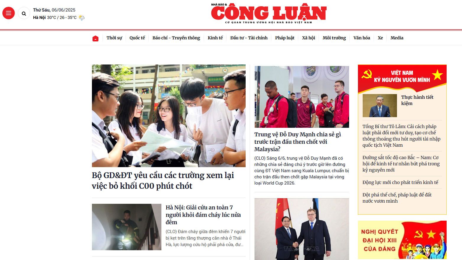 Trang nhất Báo Nhà báo & Công luận.