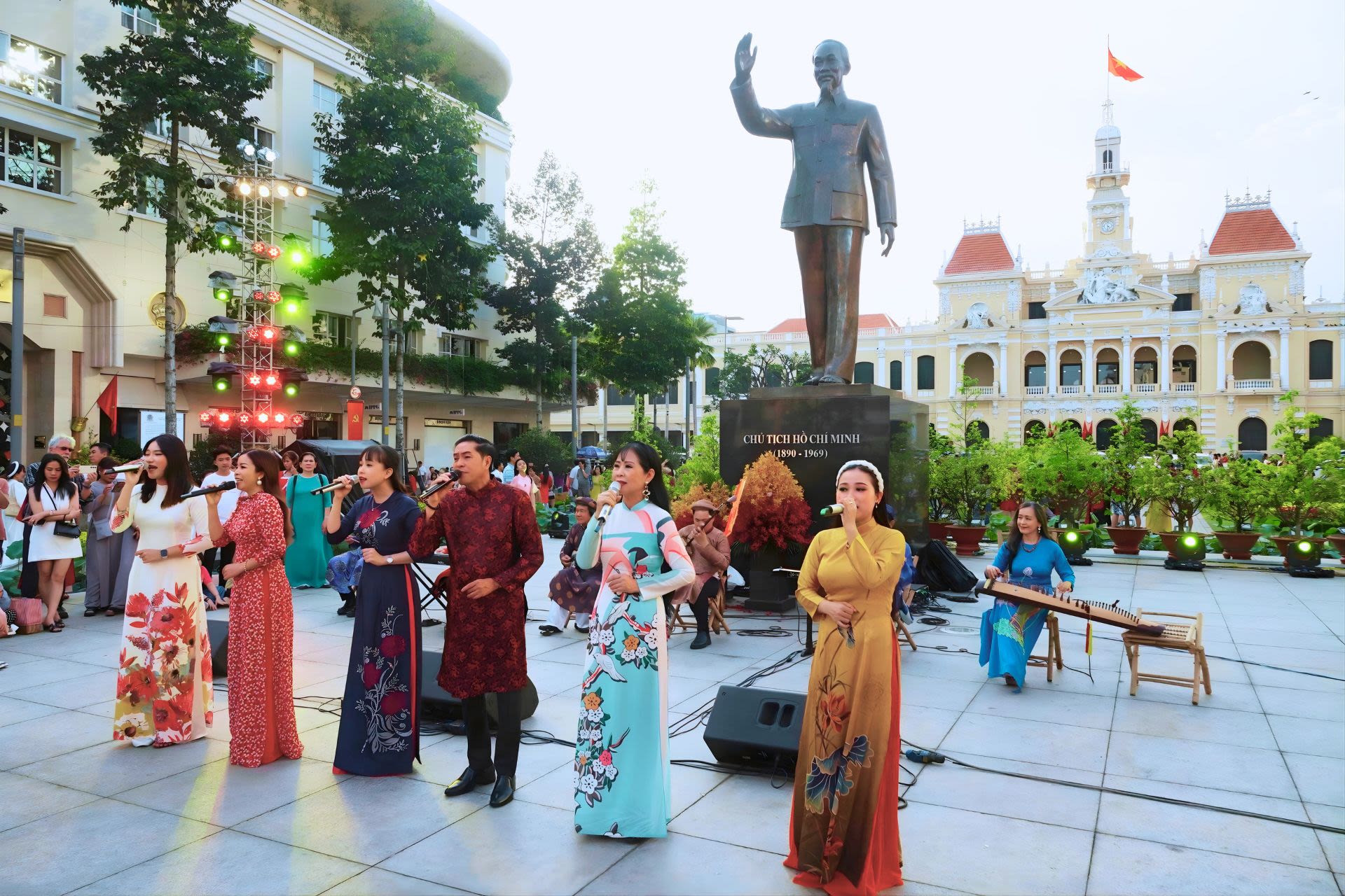 Biểu diễn Đờn ca tài tử phục vụ du khách vui xuân tại Công viên Tượng đài Chủ tịch Hồ Chí Minh.