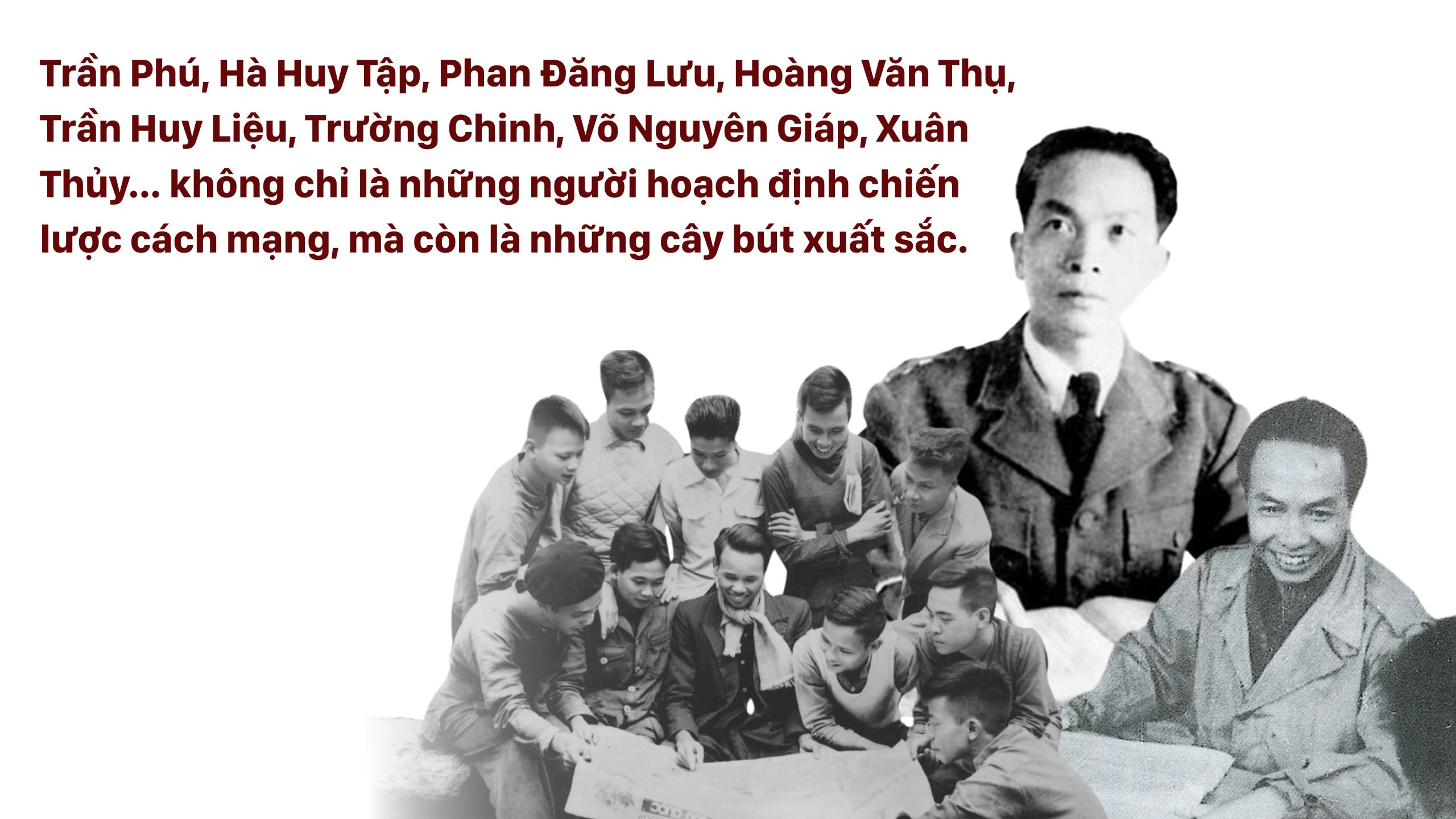 Chính trong môi trường báo chí cách mạng ấy, nhiều nhà hoạt động yêu nước, nhà lãnh đạo cách mạng đã cầm bút, sử dụng báo chí như một công cụ hữu hiệu để truyền bá tư tưởng, định hướng dư luận và tổ chức phong trào. Những tên tuổi như Trần Phú, Hà Huy Tập, Phan Đăng Lưu, Hoàng Văn Thụ, Trần Huy Liệu, Trường Chinh, Võ Nguyên Giáp, Xuân Thủy… không chỉ là những người hoạch định chiến lược cách mạng mà còn là những cây bút xuất sắc. Như Chủ tịch Hồ Chí Minh từng chỉ rõ: “Ban Chấp hành Trung ương phải kiểm soát các báo chí của Đảng để tránh những khuyết điểm về kỹ thuật và chính trị”. Để làm được điều đó không gì tốt hơn là nhà cách mạng chính là nhà báo.