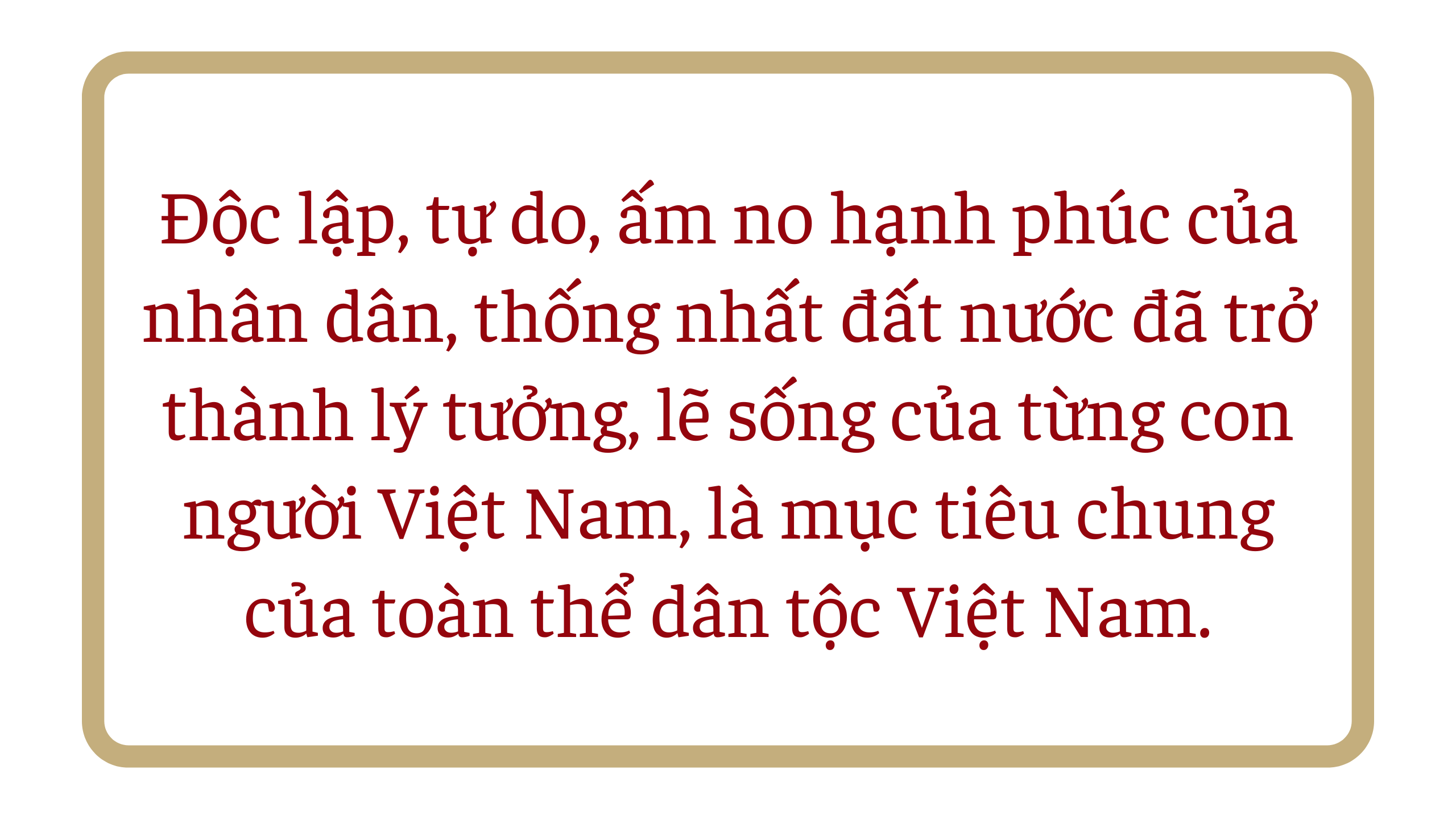 Độc lập, tự do, ấm no hạnh phúc của nhân dân, thống nhất đất nước đã trở thành lý tưởng, lẽ sống của từng con người Việt Nam, là mục tiêu chung của toàn thể dân tộc Việt Nam. Mỗi người Việt Nam yêu nước sẵn sàng gạt bỏ sang một bên những tính toán, mưu cầu, lợi ích cá nhân, cống hiến của cải, sức lực, trí tuệ, tính mạng cho sự nghiệp chung của toàn thể dân tộc, chung lòng, dốc sức cho cuộc kháng chiến, chung tay trên các mặt trận xây dựng kinh tế, văn hóa, xây dựng hậu phương... tạo ra sức mạnh nội lực vô cùng to lớn. Với tinh thần “Không có gì quý hơn độc lập, tự do”, mỗi người dân Việt Nam trở thành một chiến sĩ trên mặt trận chống Mỹ xâm lược, tiến hành kháng chiến và xây dựng đất nước.