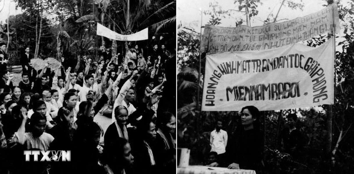 Nhân dân tỉnh Định Tường mít-tinh hoan nghênh Mặt trận Dân tộc giải phóng miền nam Việt Nam ra đời. Ảnh: TTXVN