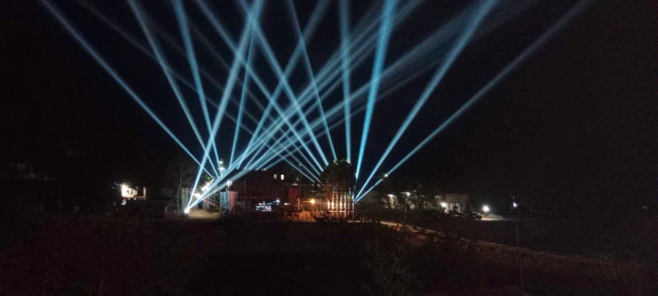 Sân khấu ngoài trời được tạo hiệu ứng ánh sáng.