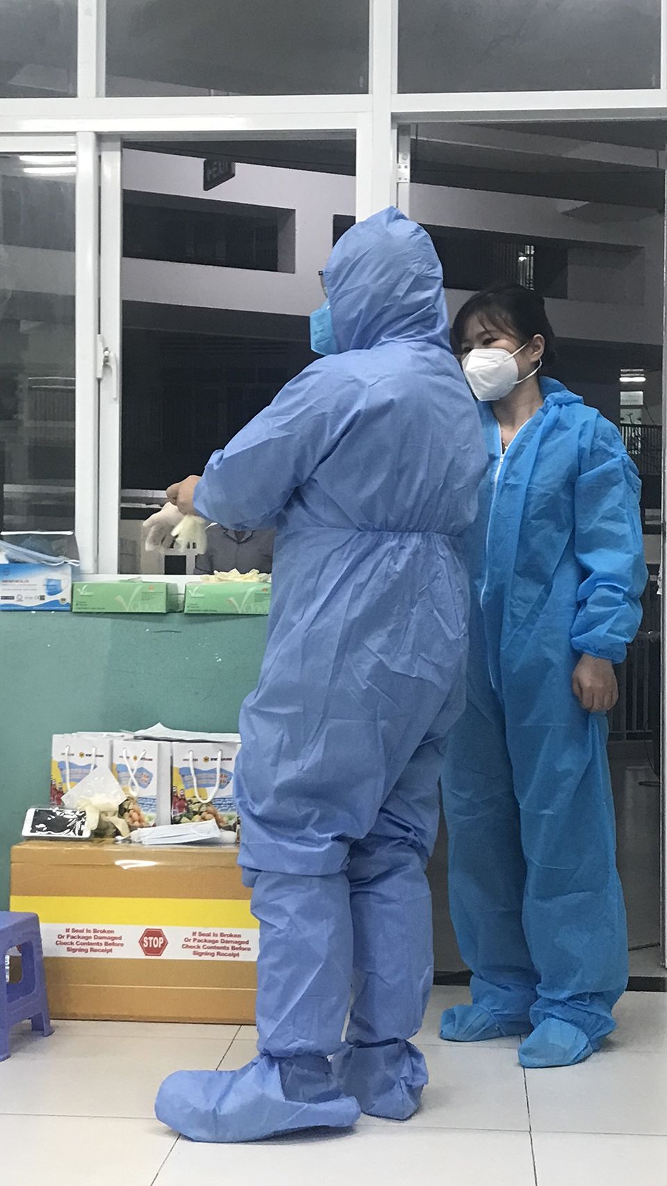 Mình thay đồ bảo hộ và bắt đầu đi buồng nhận trực. Phòng cấp cứu lúc nào cũng hoạt động hết công suất, cảm giác giống như lần mình chờ sân bay ở bên Mỹ, cứ chuyến bay này vừa cất cánh thì chuyến bay khác lại thế chỗ vào, liên tục, liên tục. Nhiều khi đồng nghiệp mình không còn ý niệm về thời gian khi ở trong này nữa, chỉ biết là đấy, có bác sĩ mới đến nhận trực là đã 7 giờ sáng rồi…