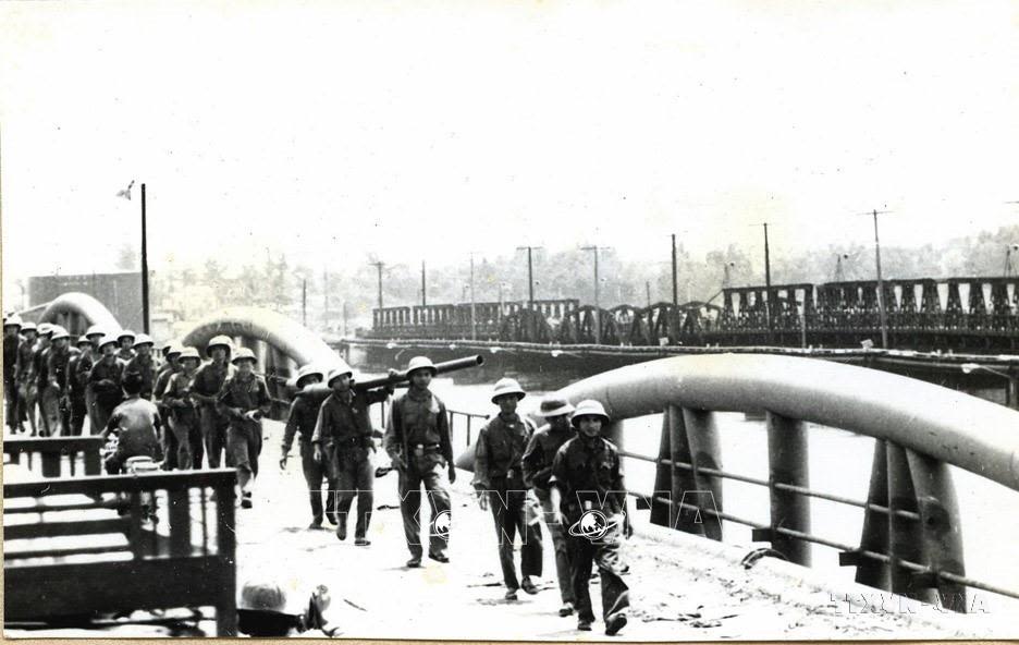 Quân giải phóng hành quân qua cầu Nguyễn Tri Phương, tiến vào Đà Nẵng, ngày 29/3/1975. (Ảnh: Tư liệu/TTXVN)