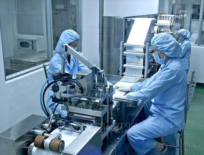 Dây chuyền ép vỉ tự động tại nhà máy của Công ty CP dược Sài Gòn (Sapharco), Khu công nghiệp Việt Nam-Singapore (VSIP), tỉnh Bình Dương. (Ảnh: TTXVN)