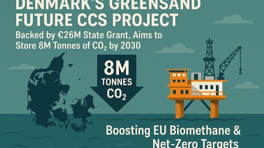 Dự án lưu trữ CO2 tiên phong của EU là dự án Greensand Future nhằm ưu trữ CO2 tại khu vực Biển Bắc ngoài khơi Đan Mạch. Dự án dự kiến trong 2 năm 2025-2026 sẽ lưu trữ khoảng 400.000 tấn CO2 mỗi năm từ các nguồn thải sinh học (biomethane) và sau đó là cả CO2 hóa thạch khi có thể. Tới năm 2030, công suất lưu trữ có thể tăng đến 8 triệu tấn CO2 mỗi năm.