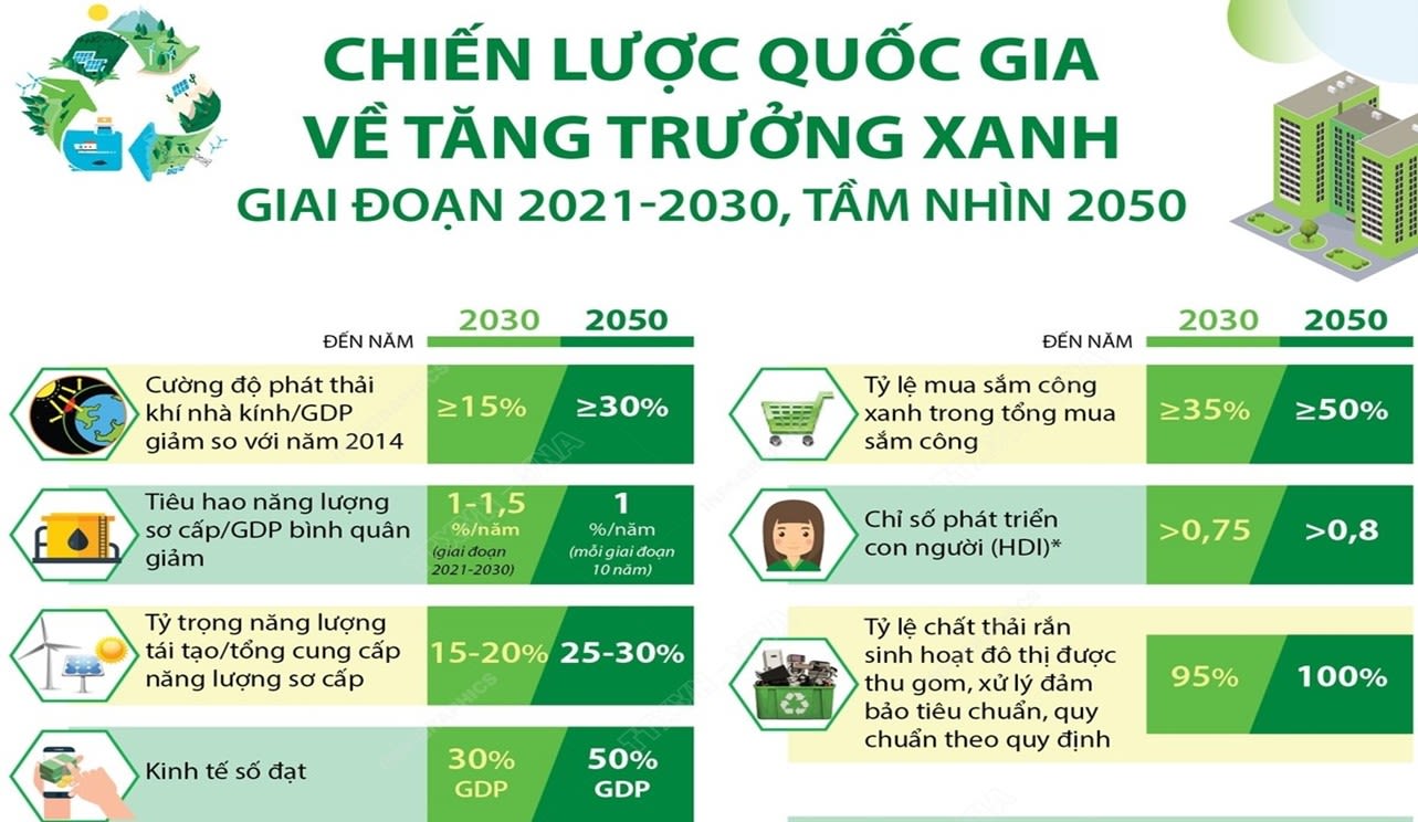 Cụ thể như Nghị Quyết Đại hội XIII của Đảng, Quyết định số 1658/QĐ-TTg của Thủ tướng Chính phủ về Phê duyệt Chiến lược quốc gia về tăng trưởng xanh giai đoạn 2021 - 2030, tầm nhìn 2050; Quyết định số 165/qđ-ttg của Thủ tướng Chính phủ ngày 07 tháng 02 năm 2024 về việc phê duyệt chiến lược phát triển năng lượng hydrogen của Việt Nam đến năm 2030, tầm nhìn đến năm 2050;