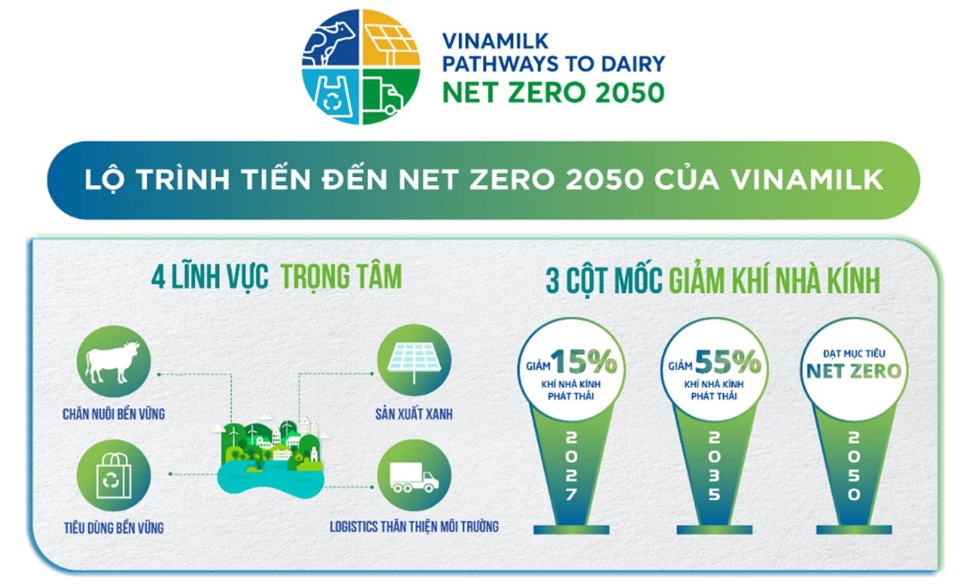 Vinamilk duy trì ba đơn vị đạt trung hòa carbon, bao gồm hai nhà máy và một trang trại; tỷ lệ năng lượng xanh thay thế gần 89% năng lượng hóa thạch trong sản xuất; duy trì việc đo đếm khí nhà kính theo chuẩn ISO 14064 cho tất cả các nhà máy trên cả nước.