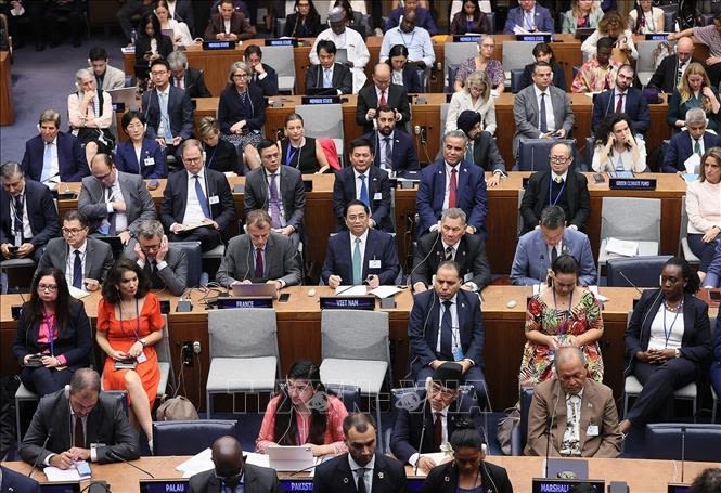 Thủ tướng Phạm Minh Chính phát biểu tại Hội nghị Thượng đỉnh Tham vọng Khí hậu của Liên hợp quốc. (Ảnh: TTXVN)