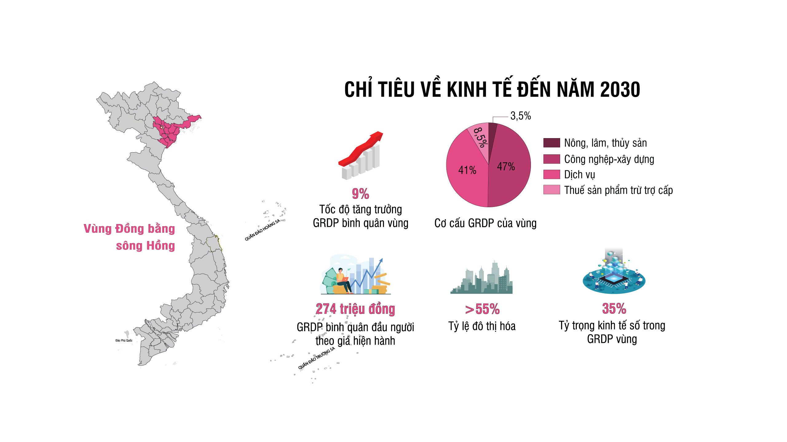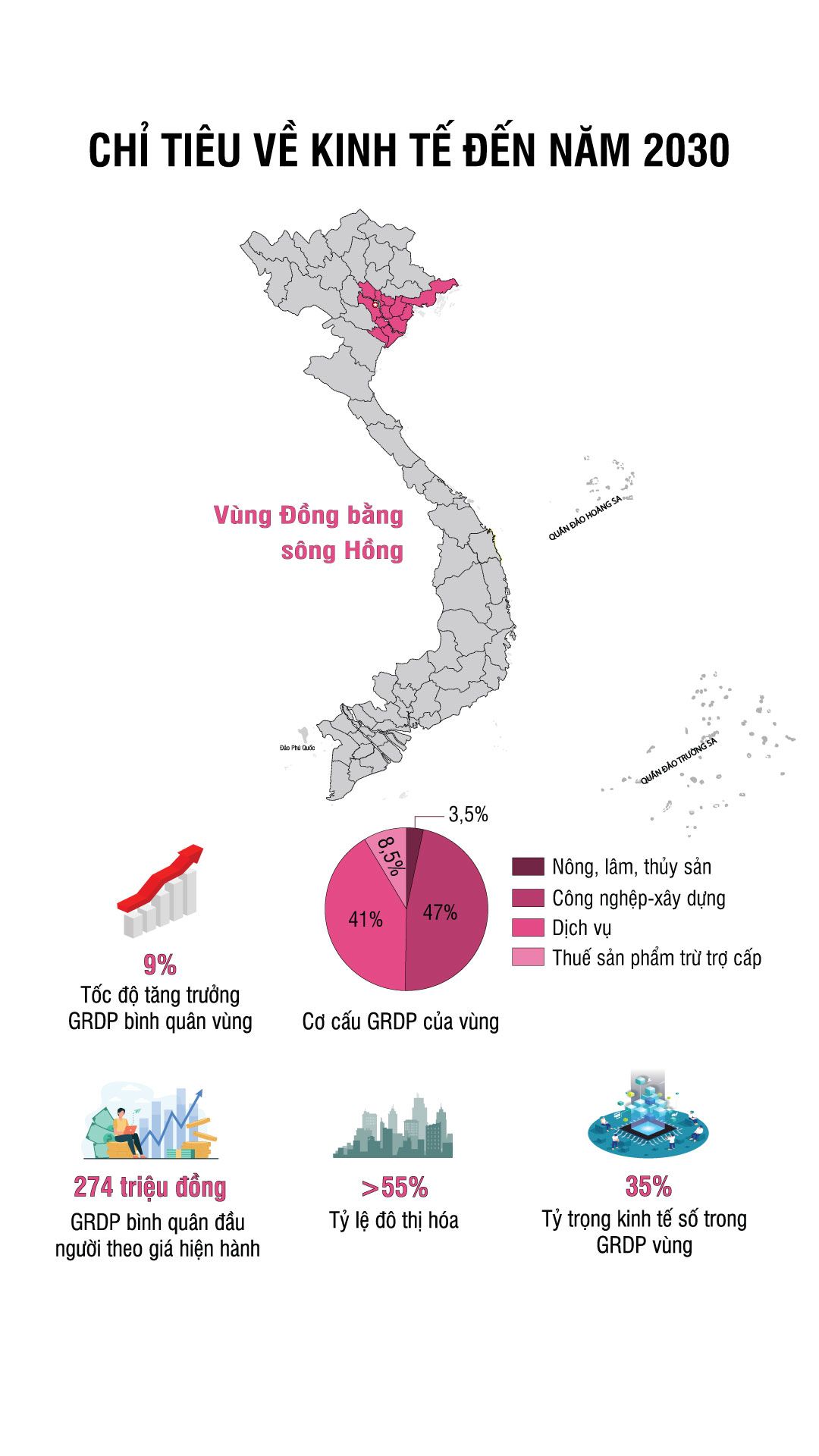 Nghị quyết 30-NQ/TW về phát triển kinh tế-xã hội và bảo đảm quốc phòng, an ninh Vùng Đồng bằng sông Hồng đến năm 2030, tầm nhìn đến năm 2045 tiếp tục xác định Thủ đô Hà Nội là trung tâm của Vùng Đồng bằng sông Hồng, là địa bàn chiến lược đặc biệt quan trọng về chính trị, kinh tế, văn hoá, giáo dục, khoa học và công nghệ, môi trường, quốc phòng, an ninh và đối ngoại của cả nước.