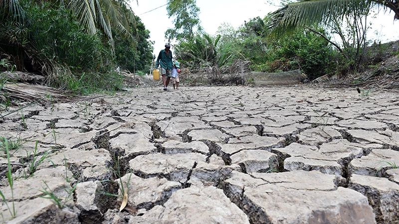 Do ảnh hưởng của biến đổi khí hậu, hạn hán, xâm nhập mặn đến sớm và nghiêm trọng hơn tại các địa phương vùng đồng bằng sông Cửu Long. (Ảnh: VIẾT CHUNG)