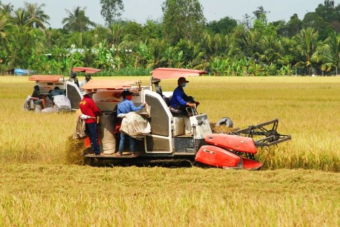 Thu hoạch lúa tại Đồng bằng sông Cửu Long.