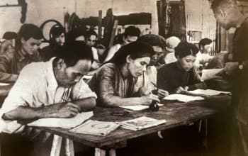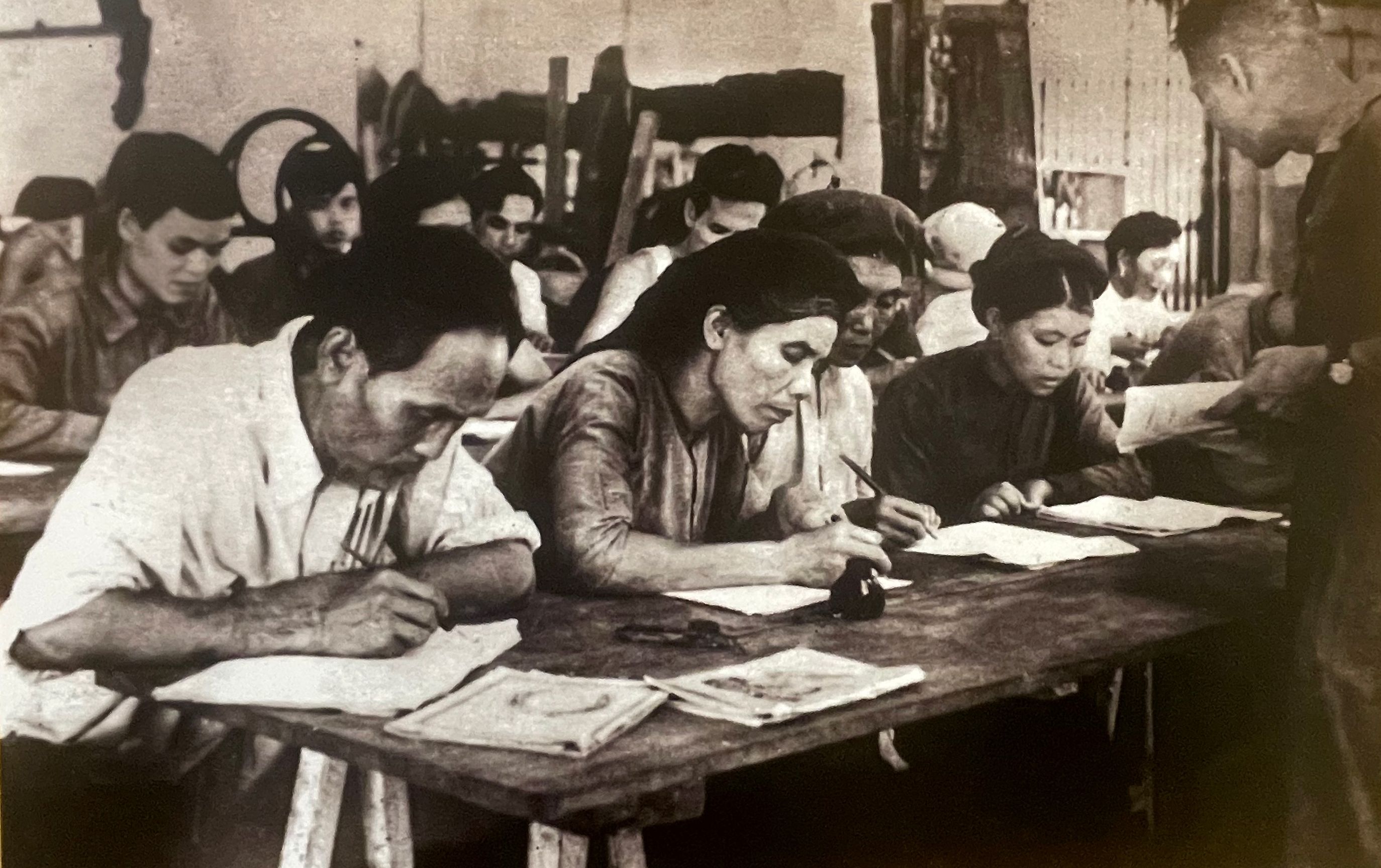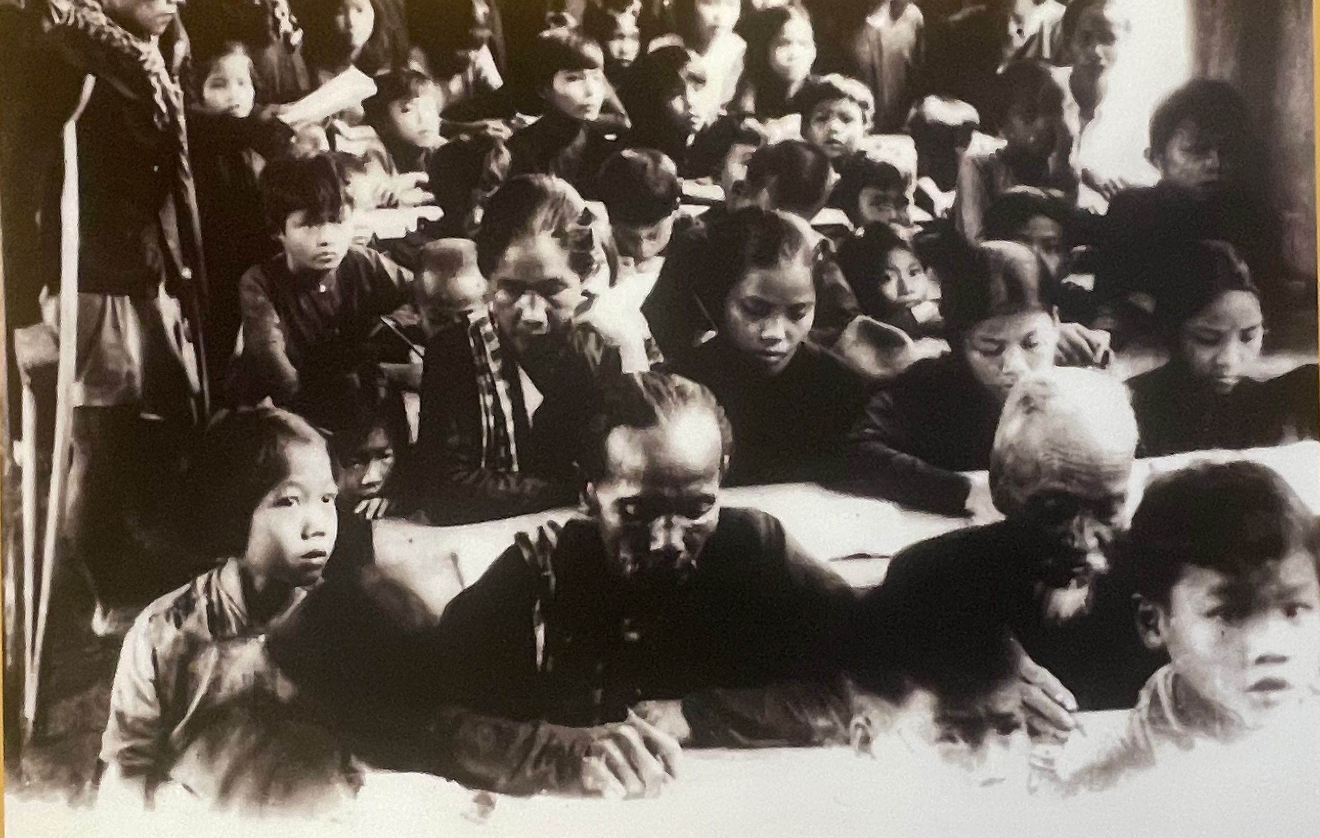 Một lớp học chữ Bình dân học vụ sau ngày Độc lập.