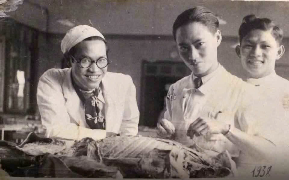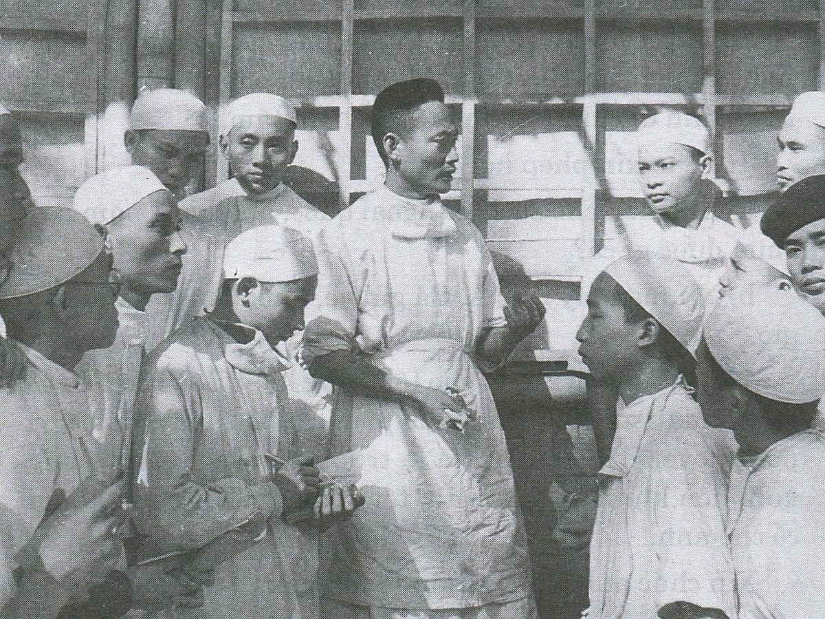Giáo sư Tôn Thất Tùng (người không đội mũ) với các sinh viên y khoa tại ATK, năm 1947. (Ảnh tư liệu)