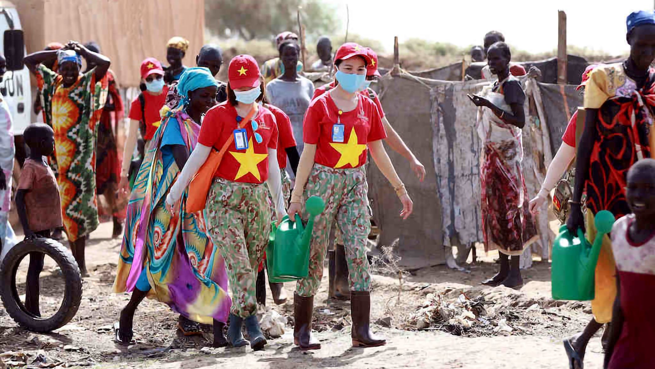 Những chiến sĩ Mũ nồi xanh đã mở ra những lớp học miễn phí dạy chữ cho trẻ em nghèo; rồi hướng dẫn người dân trồng rau để ăn, rồi để bán, có thêm thu nhập. Hay trong những ngày dịch Covid-19 hoành hành, họ tự nguyện bỏ tiền túi ra chợ mua vải và dây chun, cặm cụi ngày đêm để may hàng trăm chiếc khẩu trang, phát miễn phí cho đồng nghiệp tại Phái bộ Gìn giữ Hòa bình và người dân…