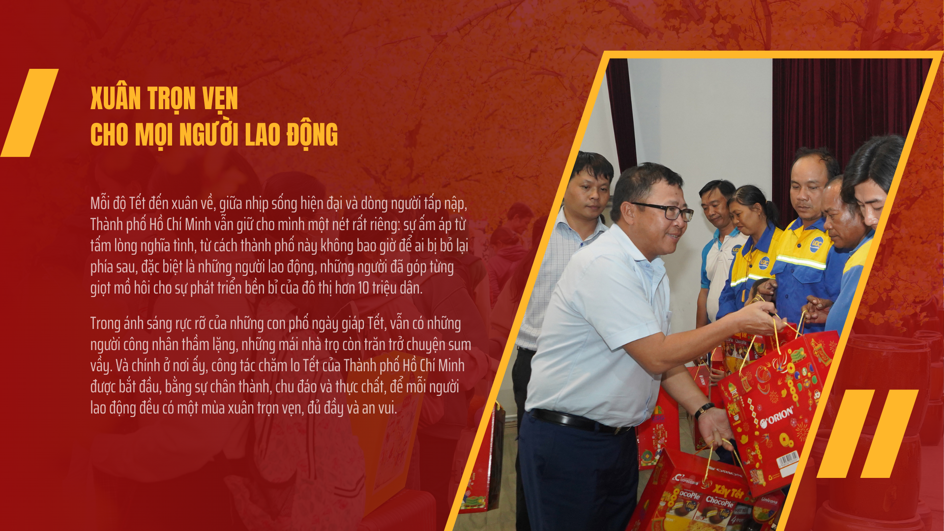 Thành phố Hồ Chí Minh là nơi những giấc mơ hội tụ, nơi hàng triệu người lao động gửi gắm tuổi trẻ, sức lực và niềm tin vào tương lai tốt đẹp. Vì vậy, chăm lo Tết cho người lao động không chỉ là trách nhiệm, mà còn là biểu hiện sâu sắc của tình nghĩa, của sự tri ân, của quyết tâm không để ai bị bỏ lại phía sau.