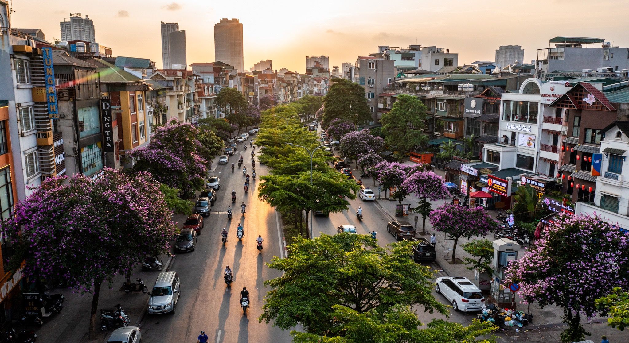 Vẻ đẹp bình yên của đường phố Hà Nội trong sắc tím bằng lăng. (Ảnh: THÀNH ĐẠT)