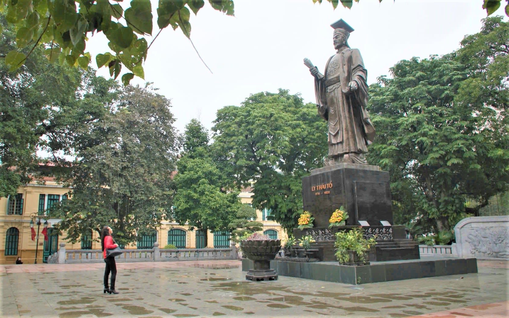 Bà Isabelle Muller tham quan tượng đài Lý Thái Tổ gần Hồ Hoàn Kiếm, Hà Nội.