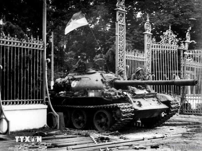 Bức ảnh lịch sử do nhà báo Trần Mai Hưởng chụp trưa 30/4/1975.