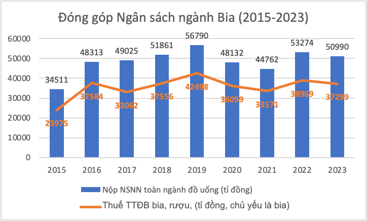 Biểu đồ minh họa: Đóng góp của ngành đồ uống vào ngân sách