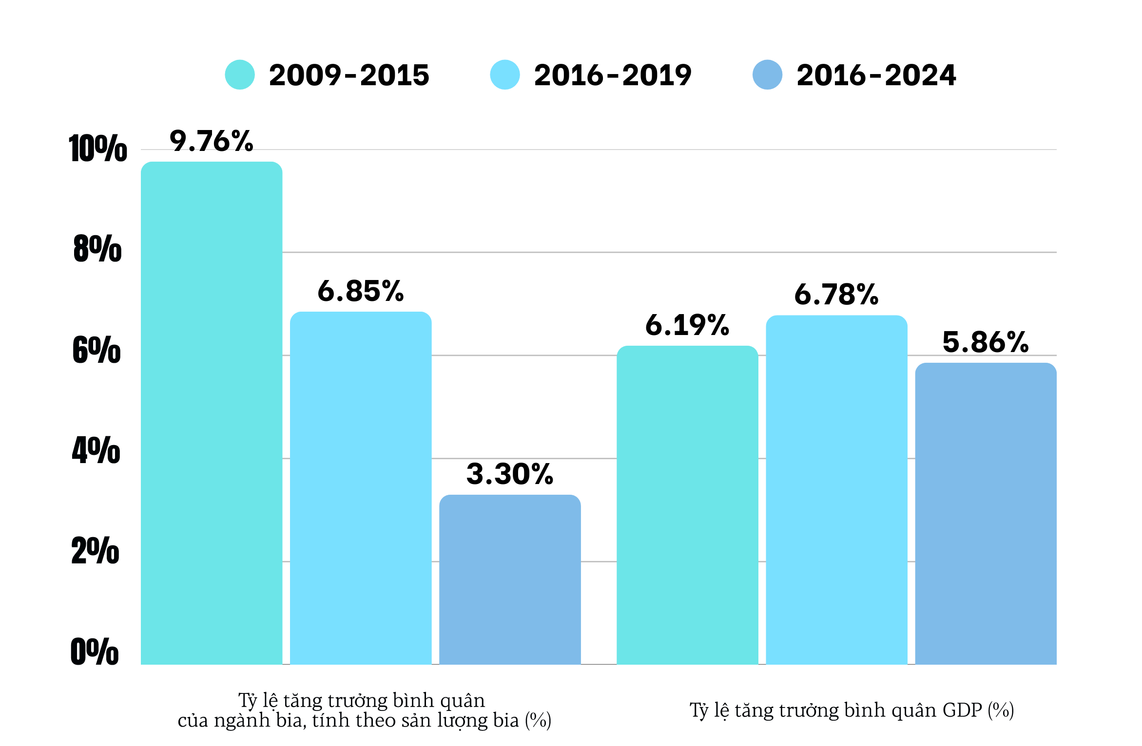 Biểu đồ thể hiện tốc độ tăng trưởng của ngành bia