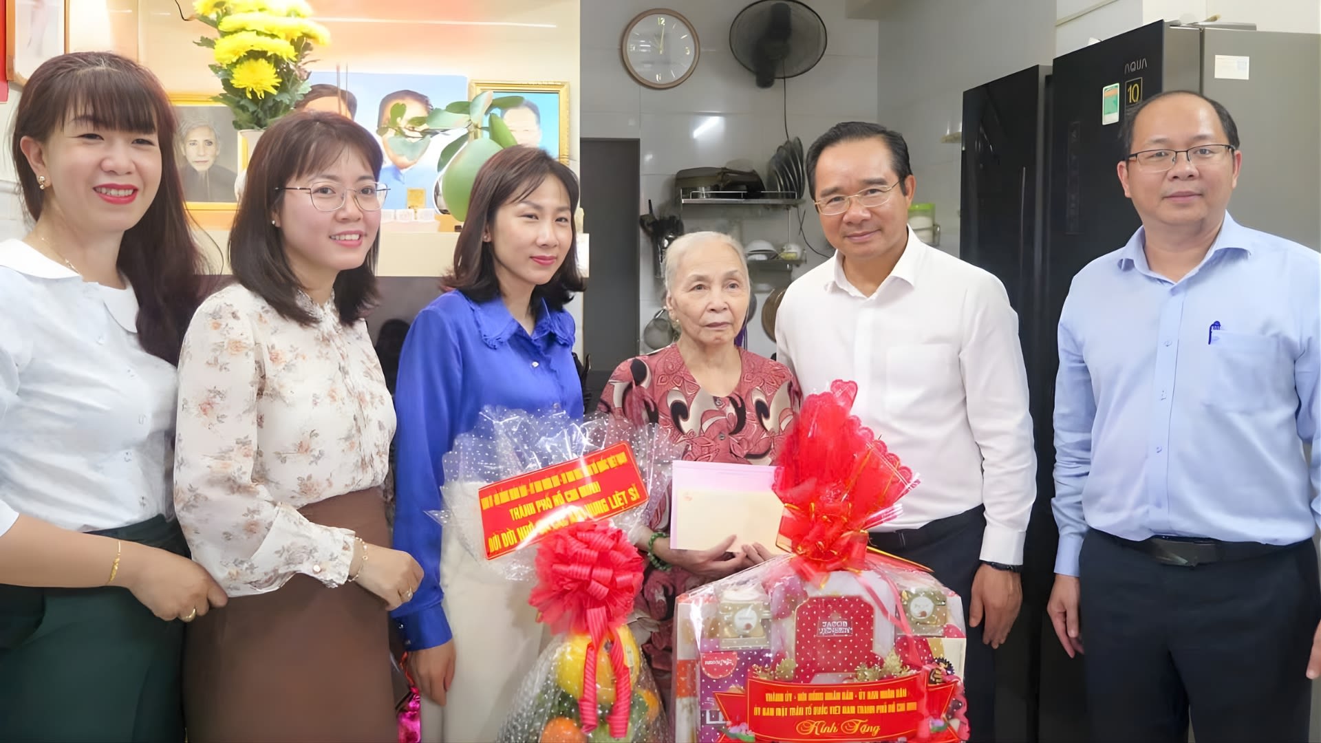 Thăm tặng quà Mẹ Việt Nam Anh hùng Trần Thị Lưỡng trên địa bàn Thành phố Hồ Chí Minh.