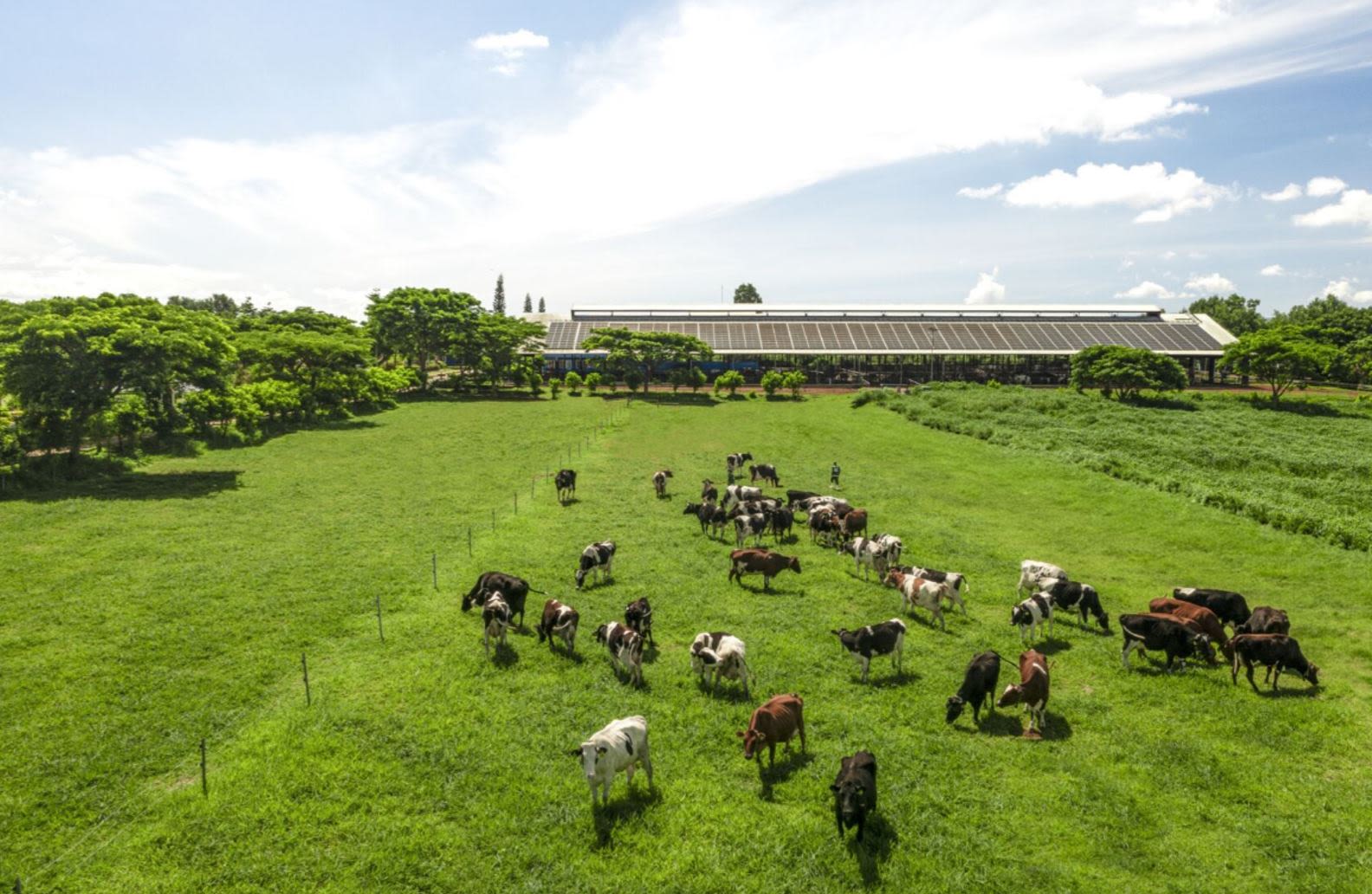 Chỉ tay về hướng có những dãy chuồng lớn với mái áp pin năng lượng mặt trời giữa những hàng cây xanh, ông Thuấn từ tốn kể về thời điểm năm 2018, Vinamilk đầu tư hơn 3.000 tỷ đồng để xây dựng Tổ hợp Trang trại Bò sữa Thống Nhất Thanh Hóa, một trong những dự án quy mô lớn, hiện đại bậc nhất cả nước. 5 năm sau đó, tổ hợp tiếp tục được đầu tư phát triển theo mô hình sinh thái Vinamilk Green Farm, một điển hình về nông nghiệp bền vững, ứng dụng kinh tế tuần hoàn.