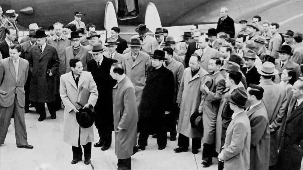 Đoàn đại biểu Việt Nam DCCH tham dự Hội nghị Geneva về Đông Dương do Phó Thủ tướng kiêm Quyền Bộ trưởng Ngoại giao Phạm Văn Đồng làm Trưởng đoàn đến Geneva, ngày 4/5/1954. (Ảnh: Tư liệu TTXVN)