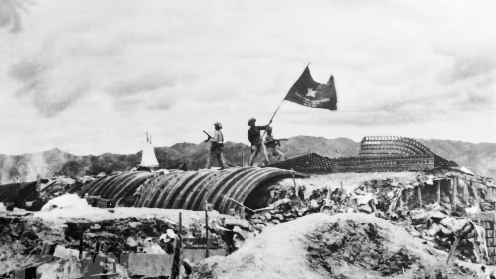 Chiều 7/5/1954, lá cờ Quyết chiến-Quyết thắng của Quân đội nhân dân Việt Nam tung bay trên nóc hầm tướng De Castries. Chiến dịch lịch sử Điện Biên Phủ đã toàn thắng. (Ảnh: TTXVN)